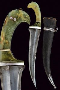 Indopersia, altezza 50.7 cm. Prima metà del XVIII Secolo Al centro larga lama dritta a due fili con punta triangolare [..]