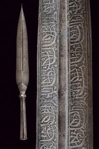 Siria, altezza 64,5 cm. fine del XVIII Sec. Pesante testa ad ogiva decorata in argento a koftgari come pure il [..]