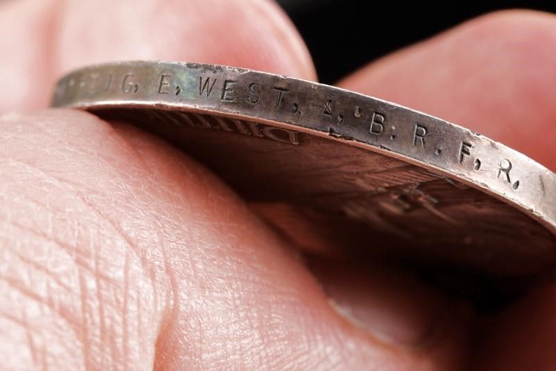 Regno Unito, altezza 43 mm. 1920 - 1930 Della Royal Fleet. In argento, con effige del Re Giorgio V al recto e nave con motto 'DIUTURNE FIDELIS' al verso. Il bordo marcato 'J. 34151 (CH. B. 14152) G. E. WEST A. B. R. F. R.' Nastrino tricolore.