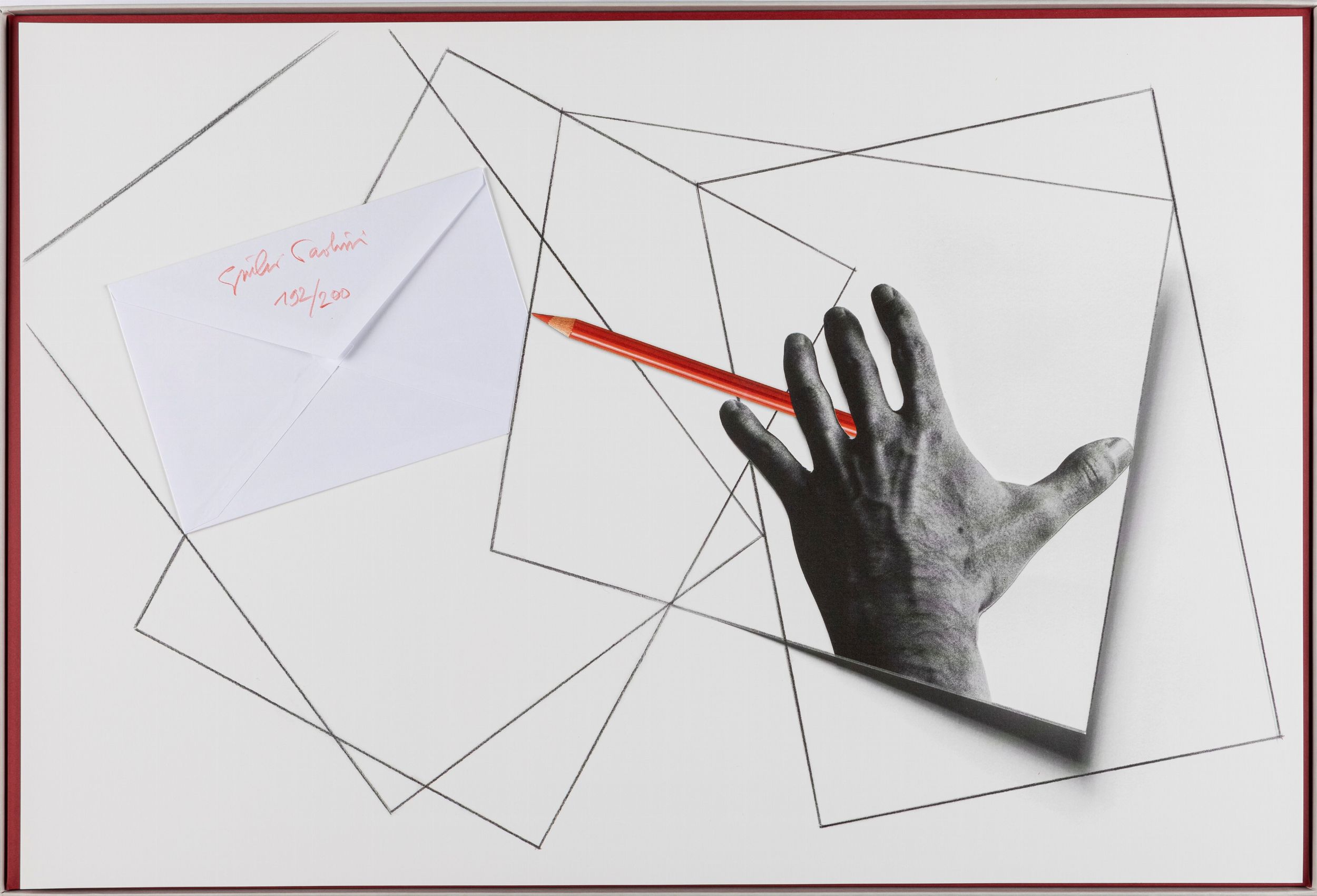 collage e stampa litografica a colori su carta fustellata, es. 192/200, cm 39,5 x 58,5 (misure del foglio) cm 41 x 61 x 3,5 (misure della custodia) 2010 Entro custodia originale Firma a matita in alto a sinistra Edizione di 200 esemplari numerati e firmati in numeri arabi 30 esemplari numerati e firmati in numeri romani Editore Electa