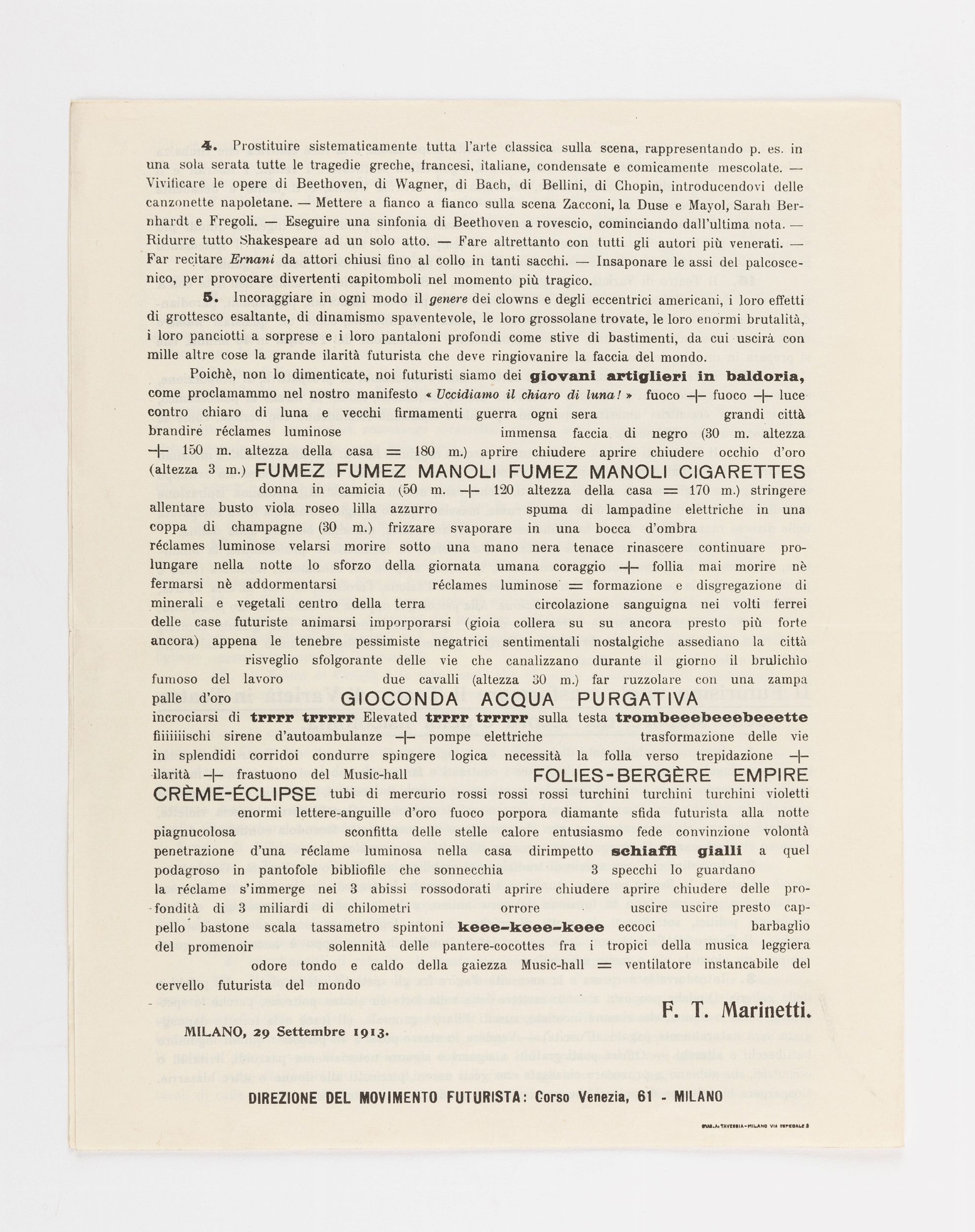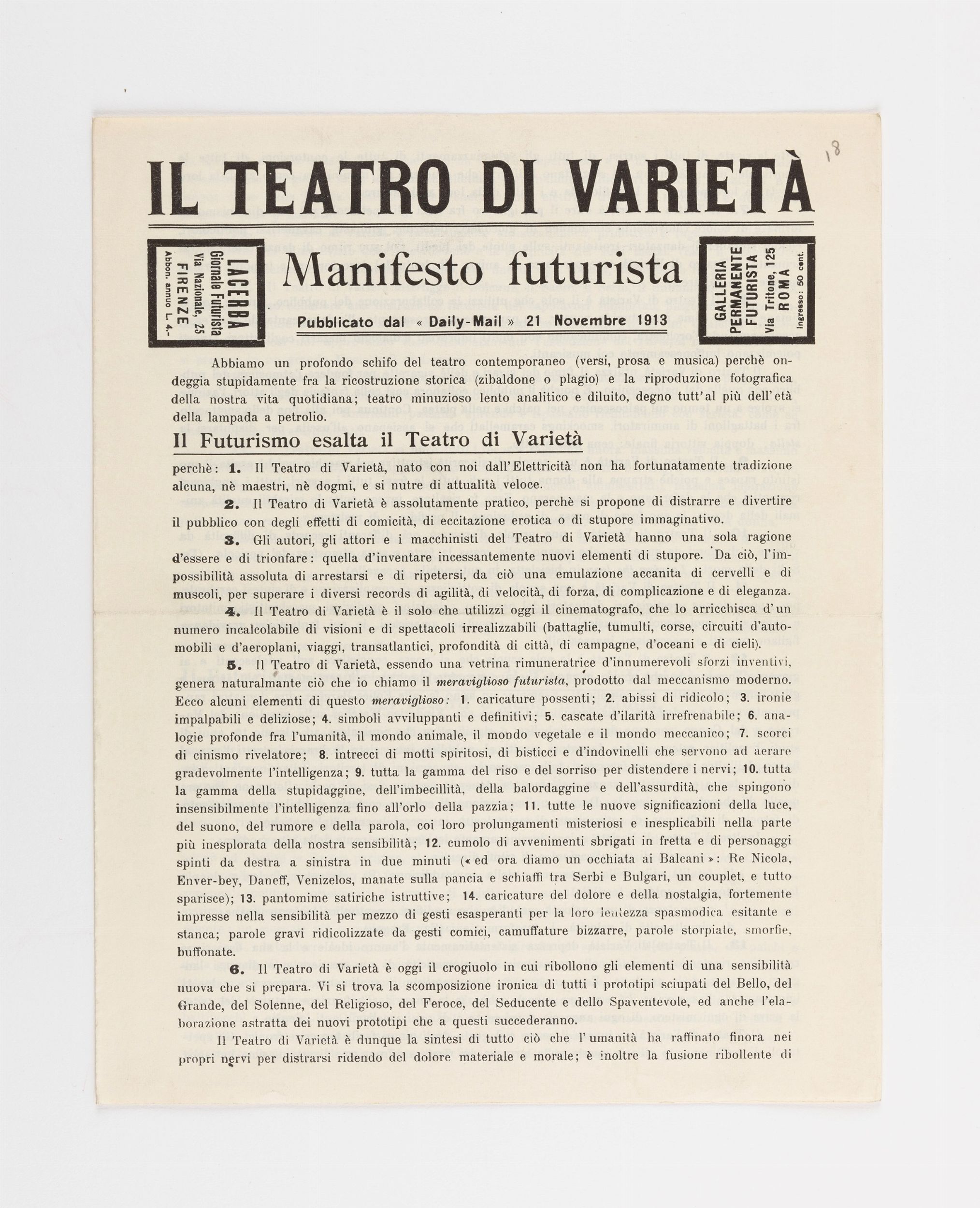 Il teatro di varietà . Manifesto futurista
