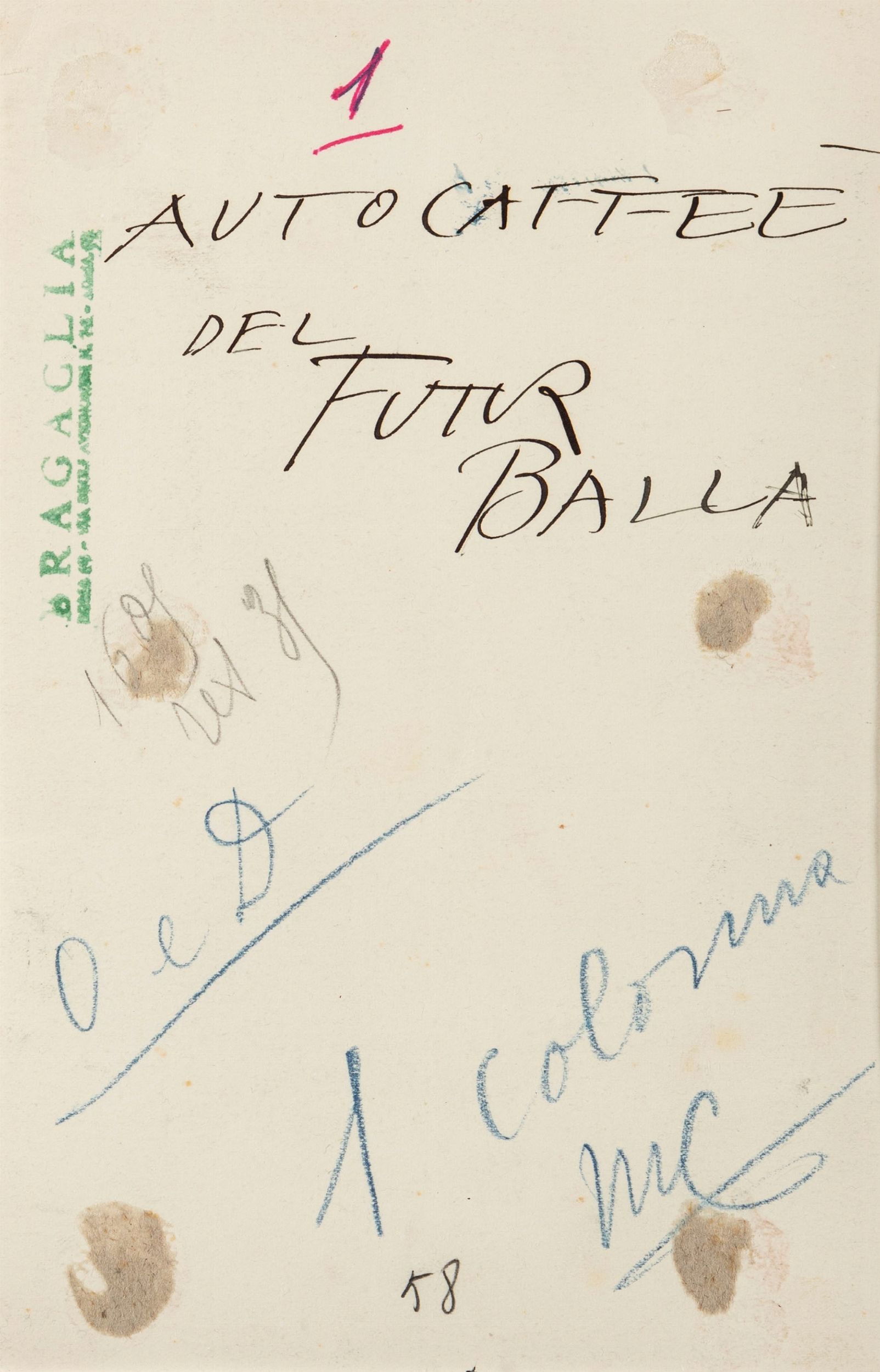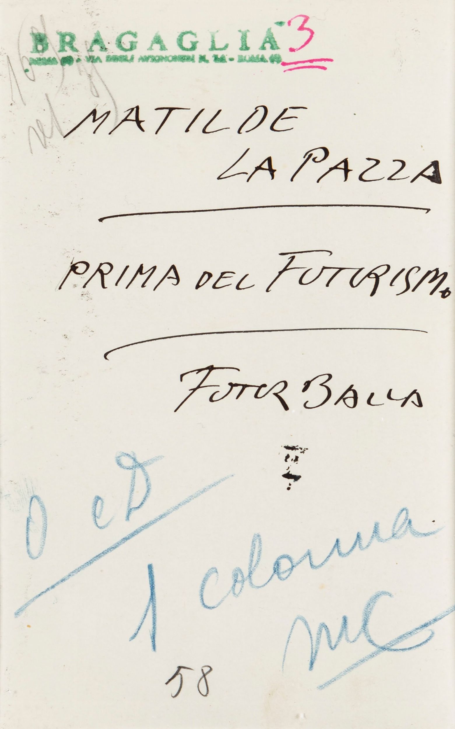 Titolato al verso: Matilde la pazza. Prima del Futurismo. Futurballa Iscrizioni autografe dell'artista al verso Timbro del fotografo al verso