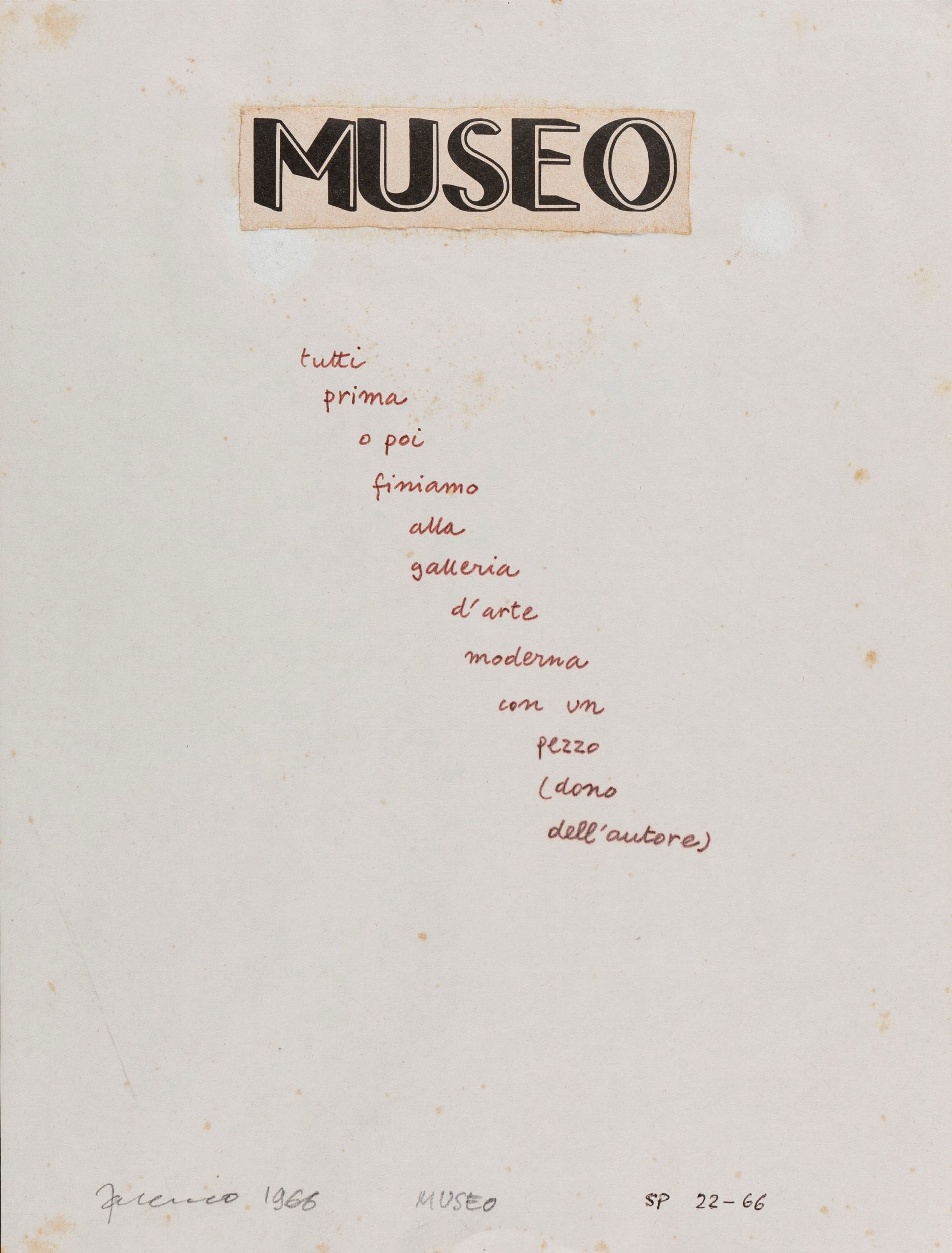 1966 Firmato, datato e titolato lungo il margine inferiore: Sarenco 1966, Museo