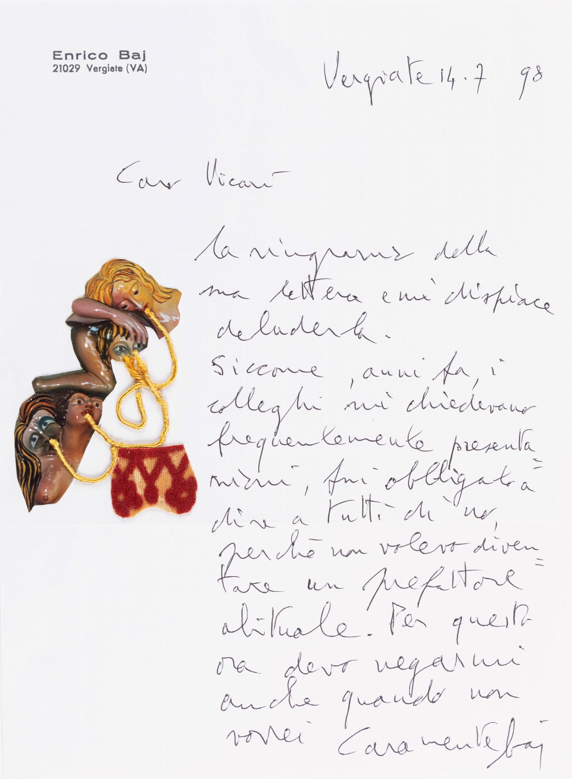 1998 Datato in alto a destra: ... 14.7 '98 Firmato in basso a destra: Baj Entro busta originale