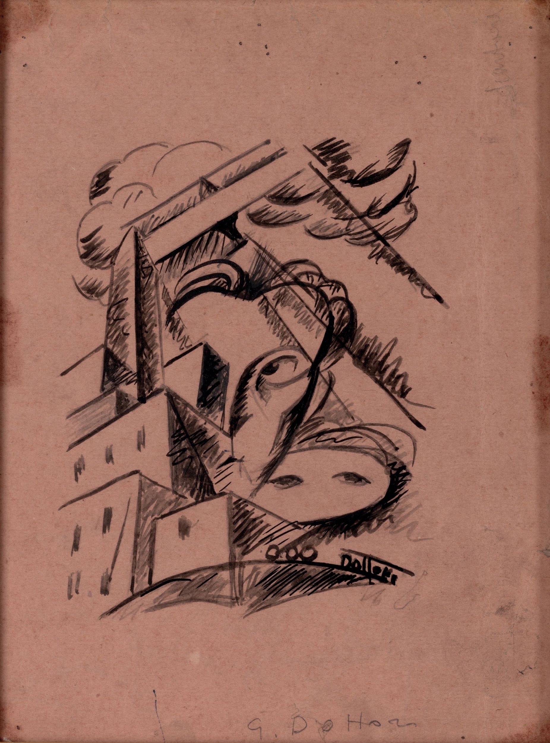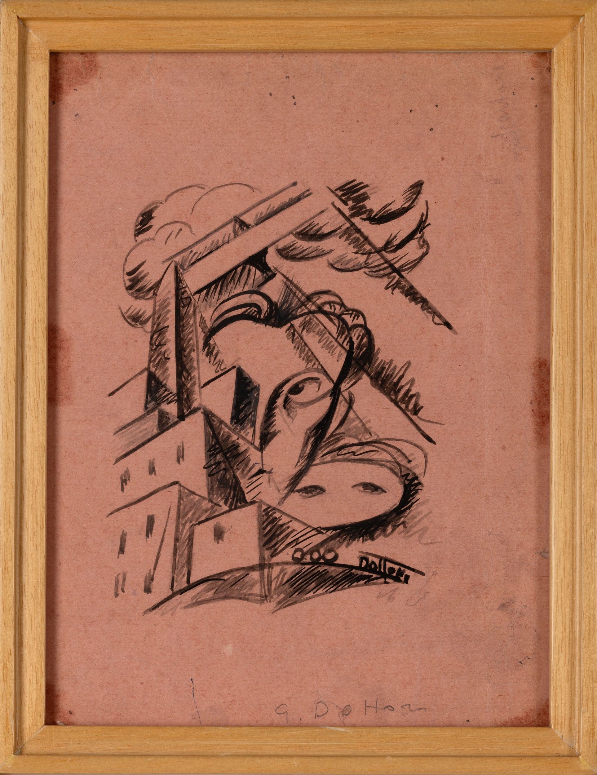 china e matita su carta rosa, Largh. 16,8 - Alt. 22 cm