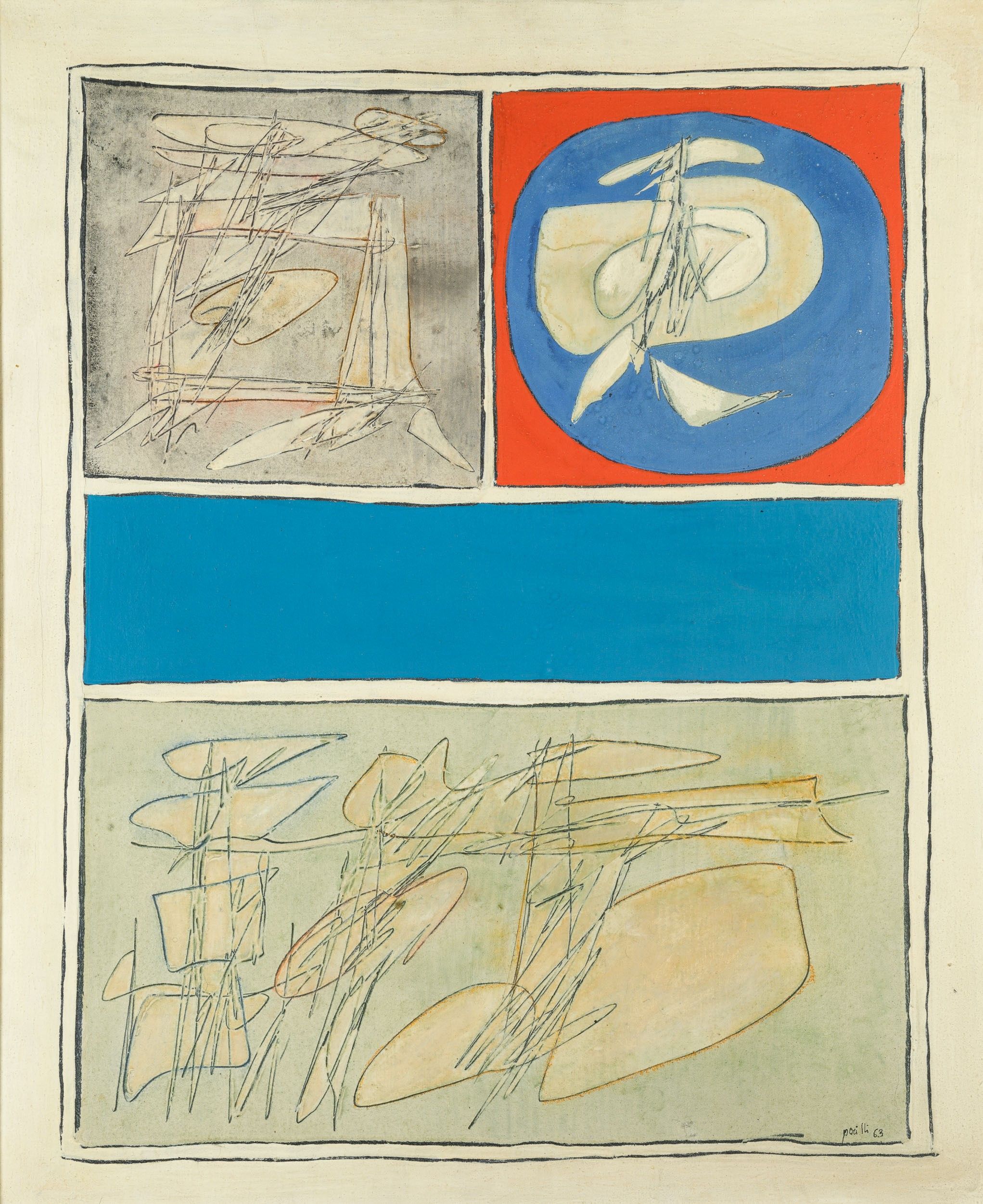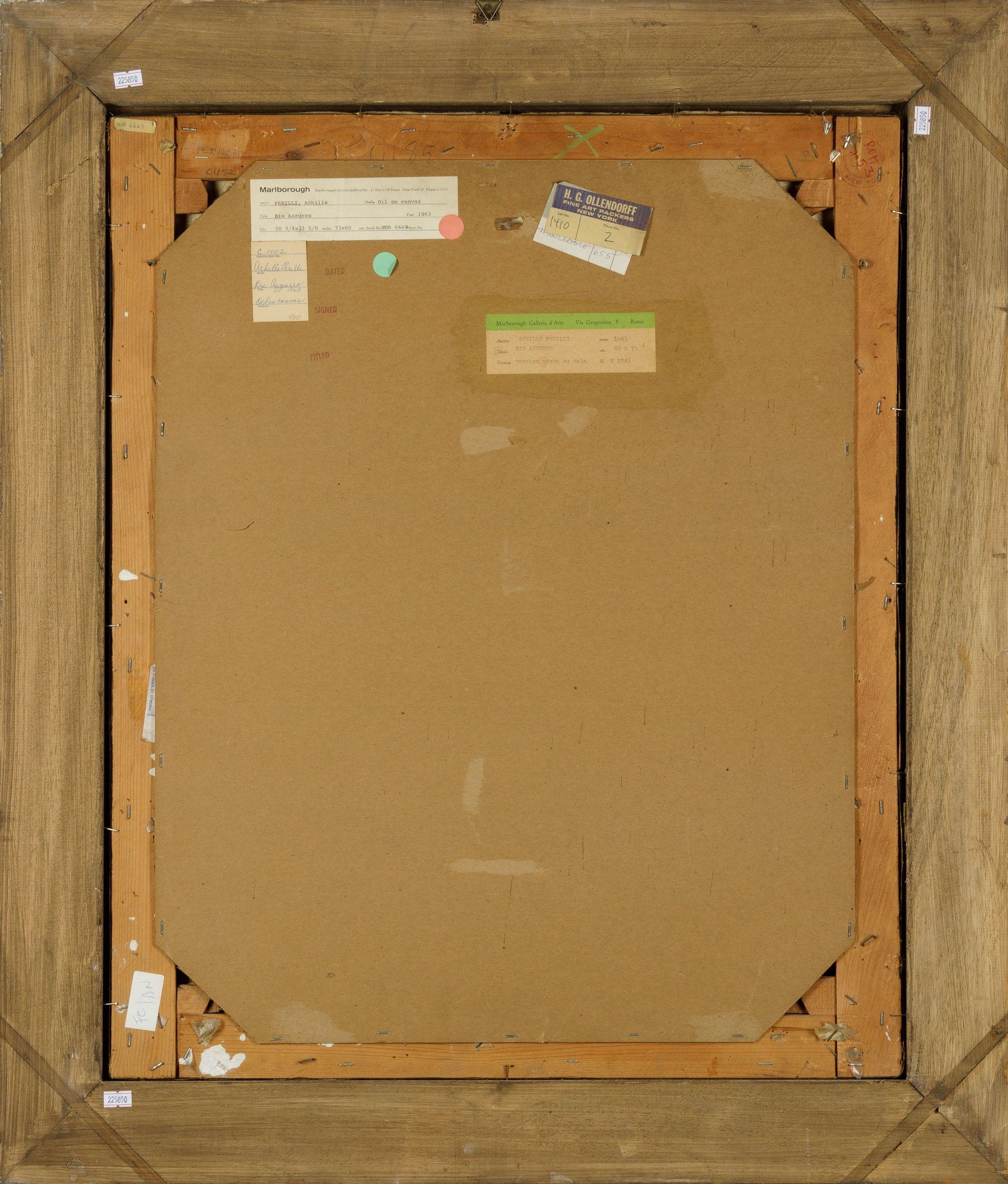 1963 firmato e datato in basso a destra Etichetta al retro della Galleria d’Arte Marlorough, Roma Etichetta al retro della Galleria d’Arte Marlorough, New York