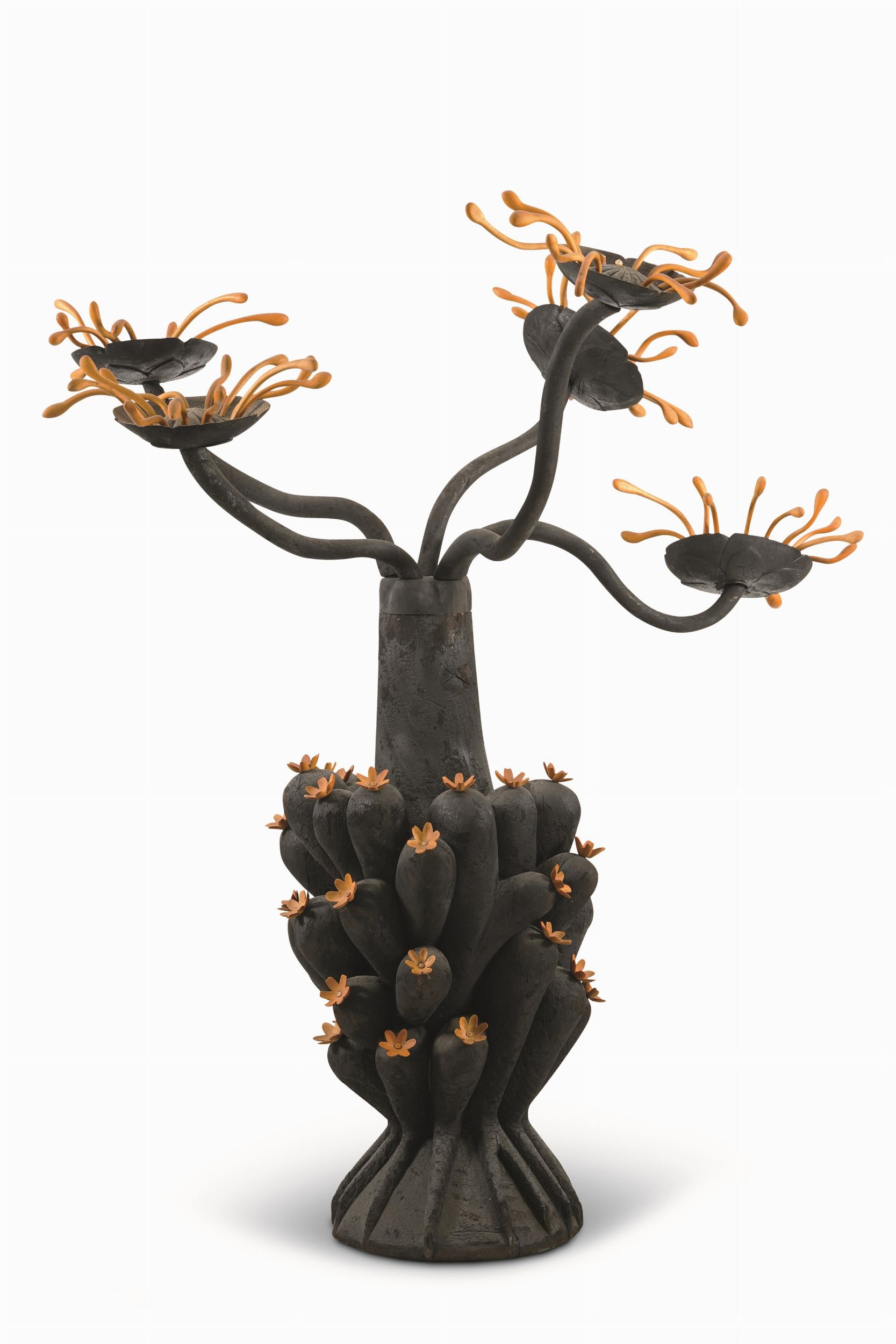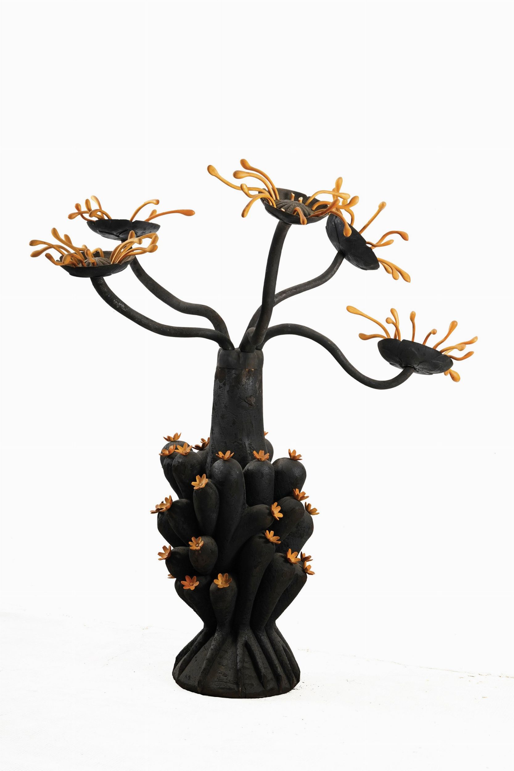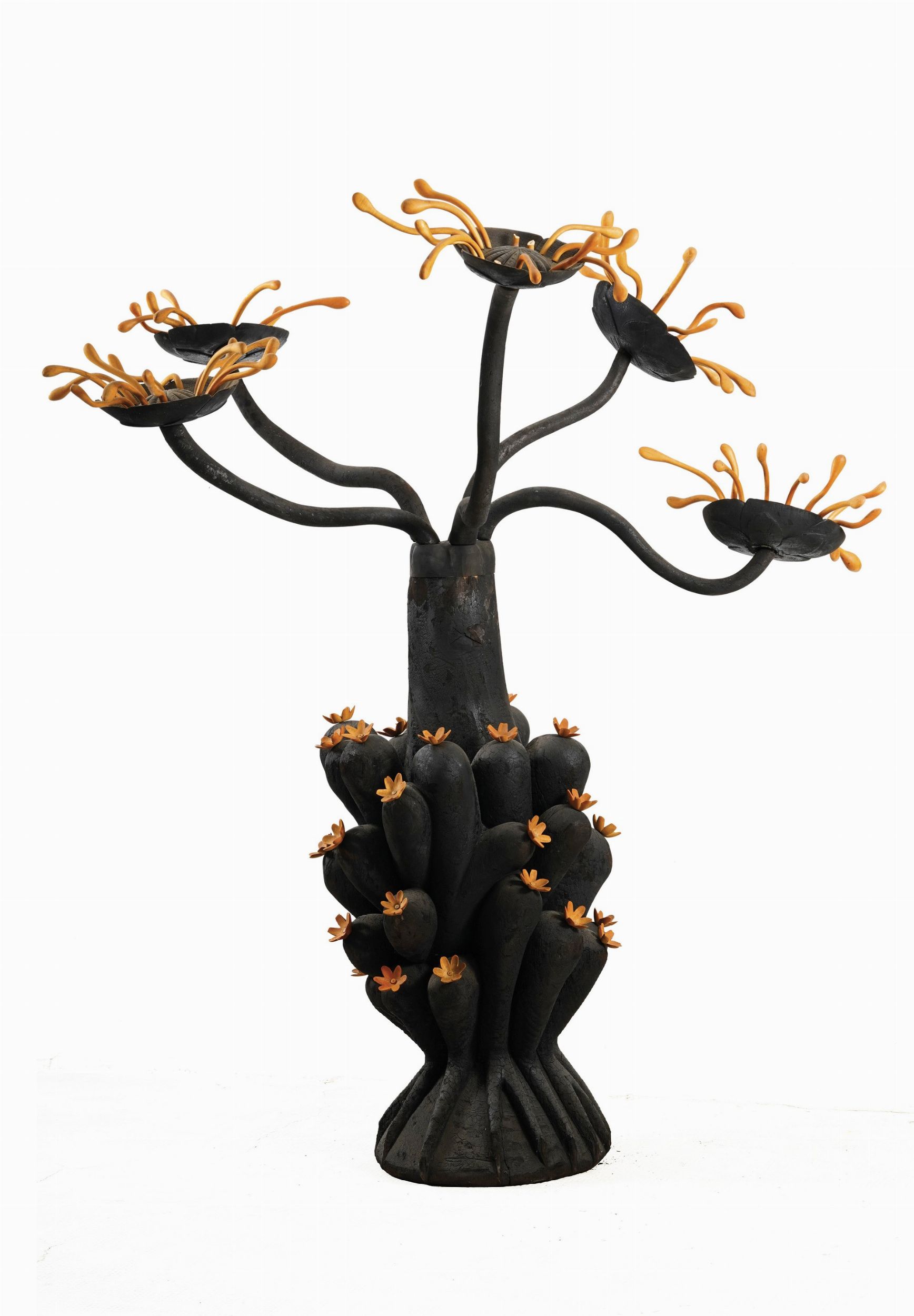 scultura in legno carbonizzato e sandalo, Cm 60X55X163