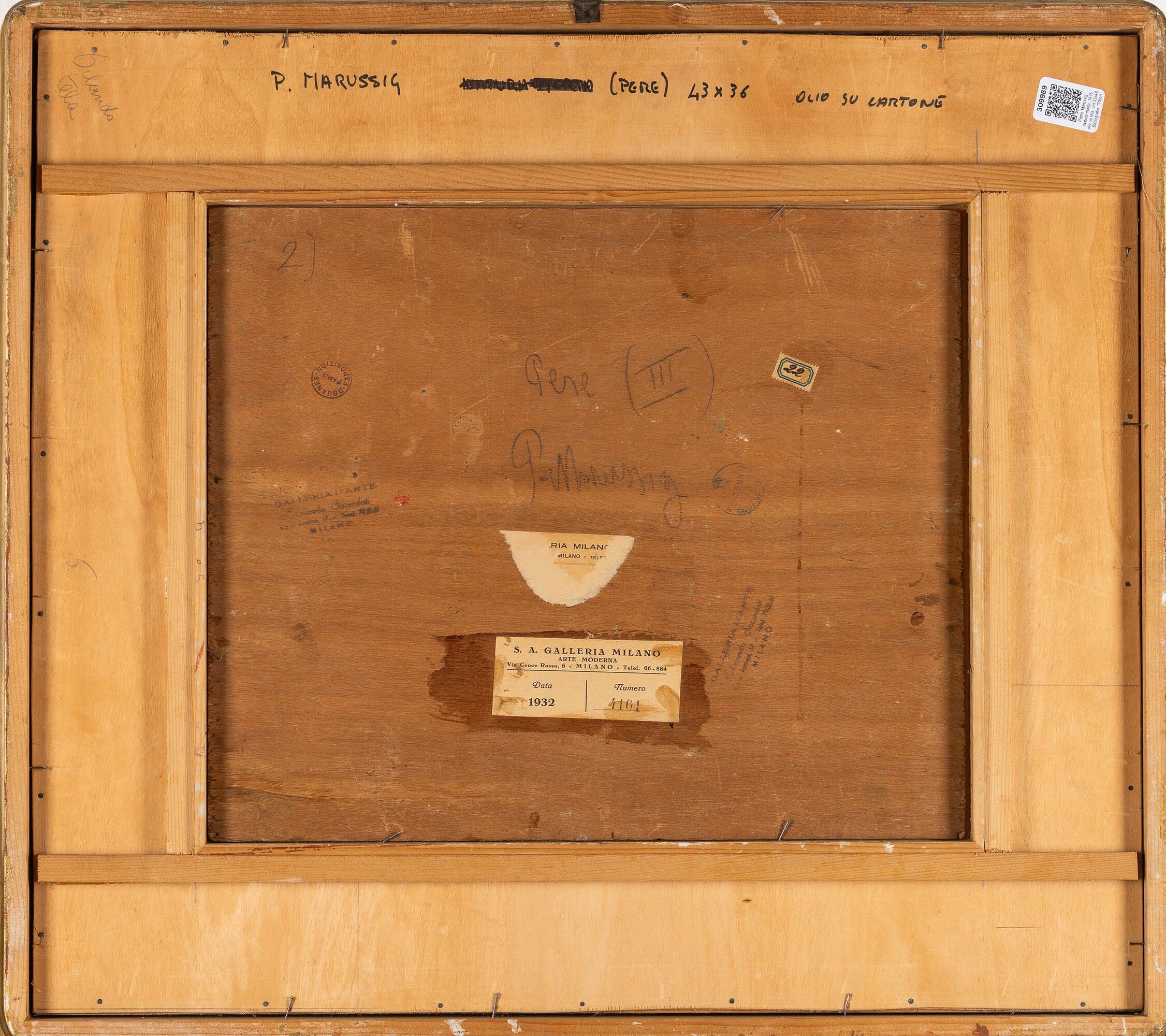 1930 circa firmato in alto a destra Etichetta al retro della Galleria Milano, Milano Timbri al retro della Galleria Edmondo Sacerdoti, Milano