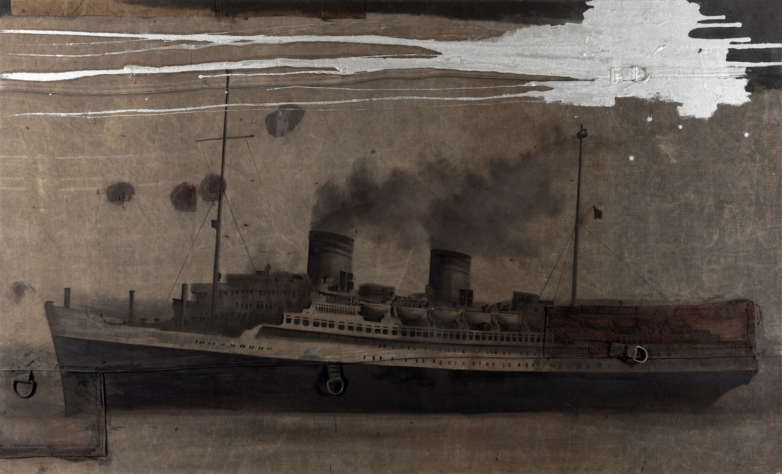 olio su telone di copertura di vagone ferroviario, Largh. 220 - Alt. 130 cm