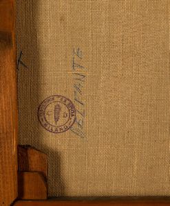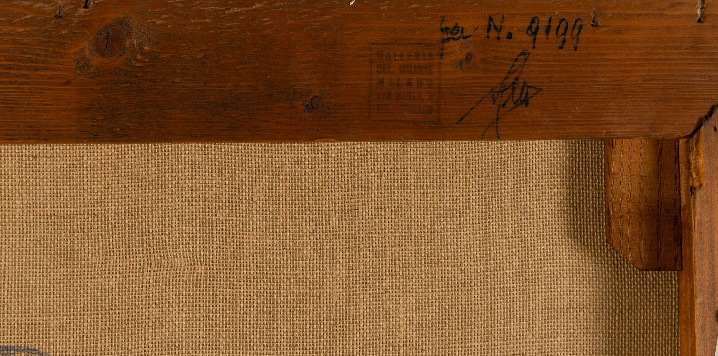1955 firmato in basso a destra Timbro al retro della Galleria del Milione, Milano Timbro al retro della Galleria La Spiga, Milano