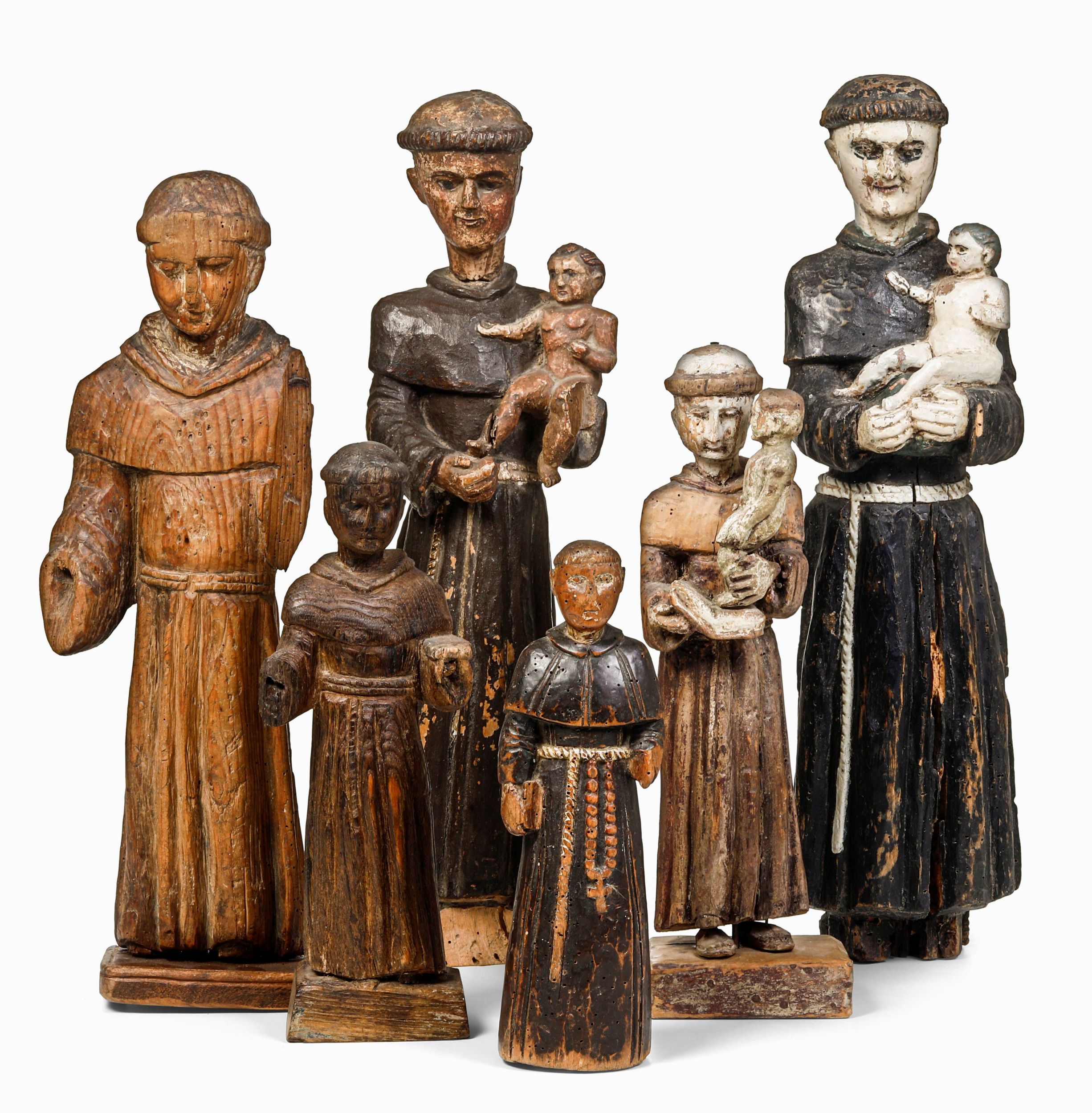 Collezione di sei sculture lignee raffiguranti Sant'Antonio da Padova. Varie manifatture [..]