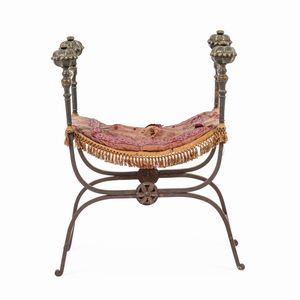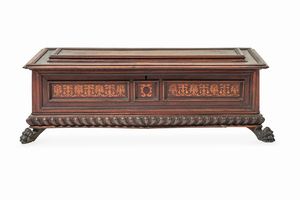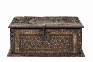 cm 47X28X21 Corpo rettangolare con finimenti in ferro forgiato e decori geometrici in osso di ispirazione more [..]