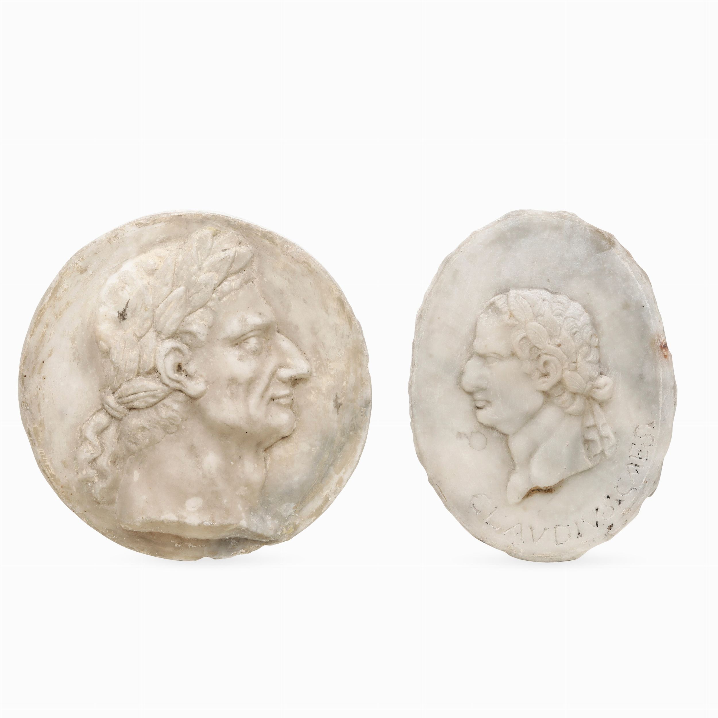 Due medaglioni con profili degli imperatori romani Cesare e Claudio. Arte barocca [..]