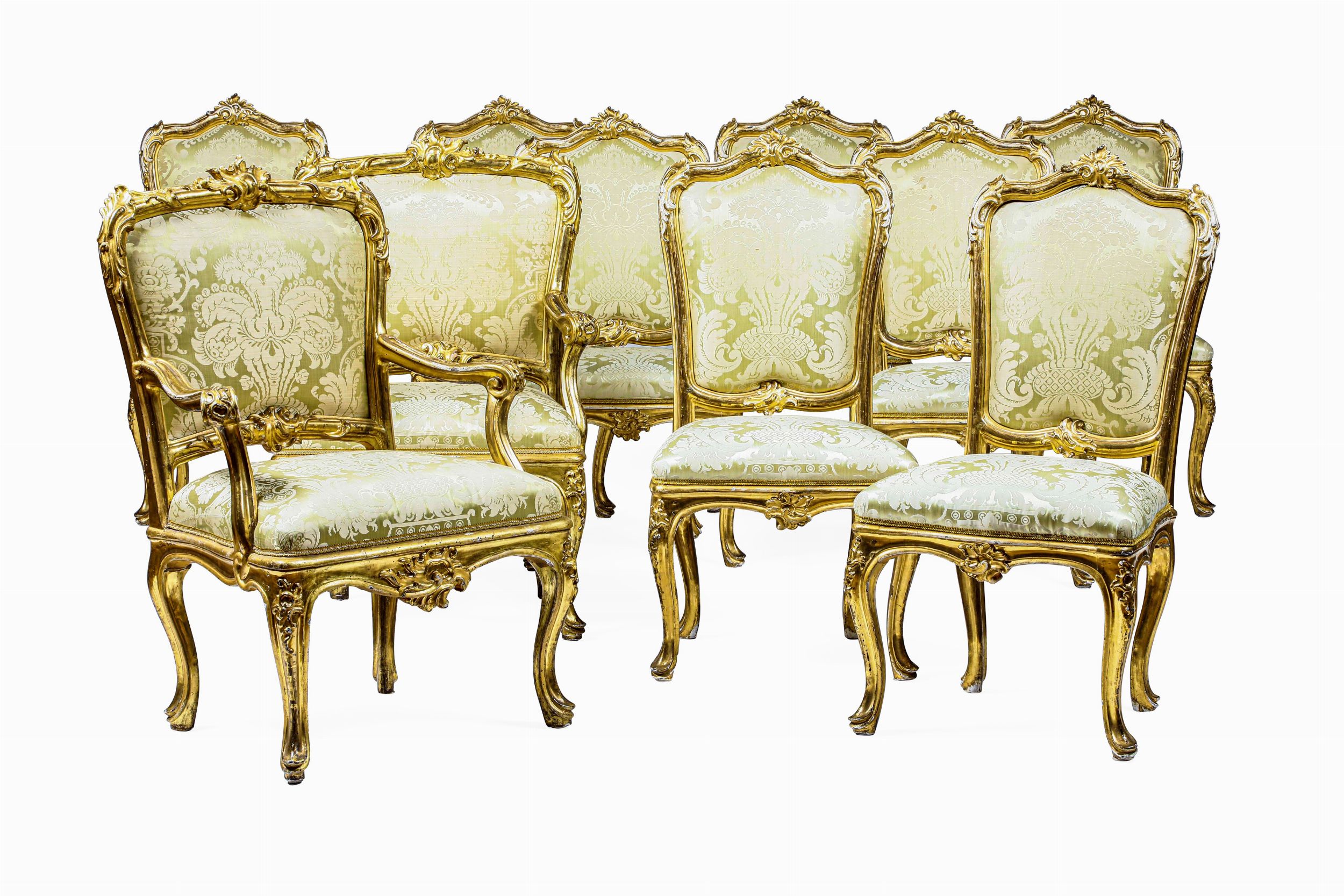 Insieme di otto sedie e due poltrone in legno intagliato e dorato. Roma, XVIII s [..]