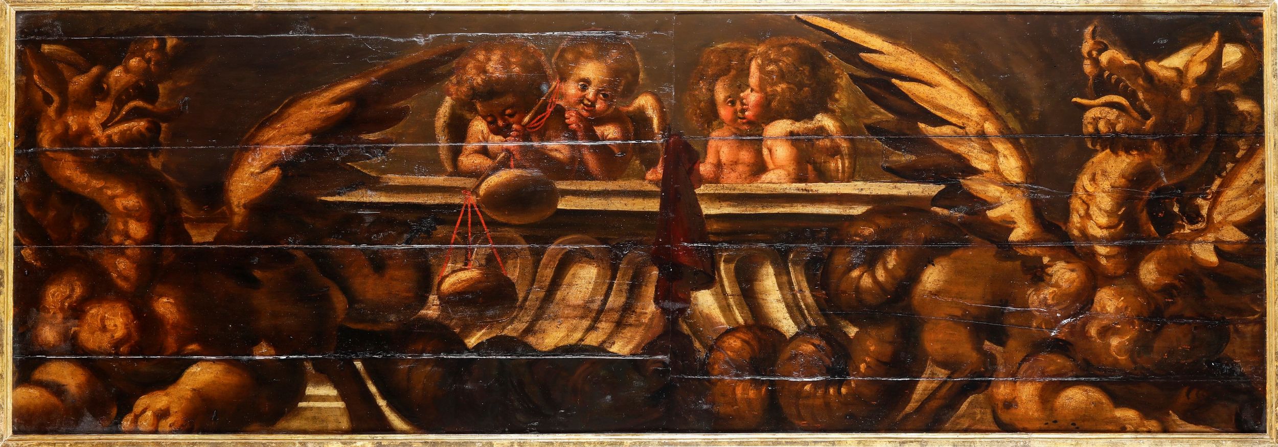 Scuola emiliana del XVI secolo Allegoria della Giustizia con putti e grifoni