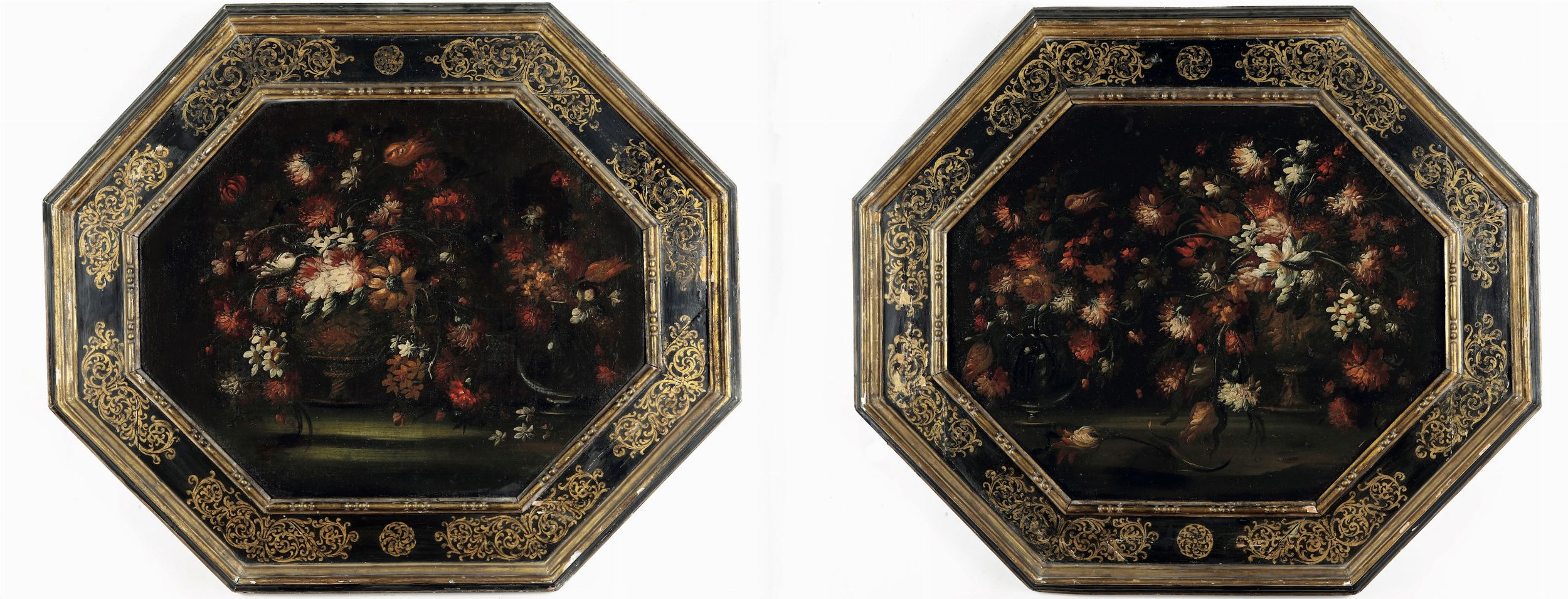 Scuola del XVIII secolo Nature morte con vasi di fiori