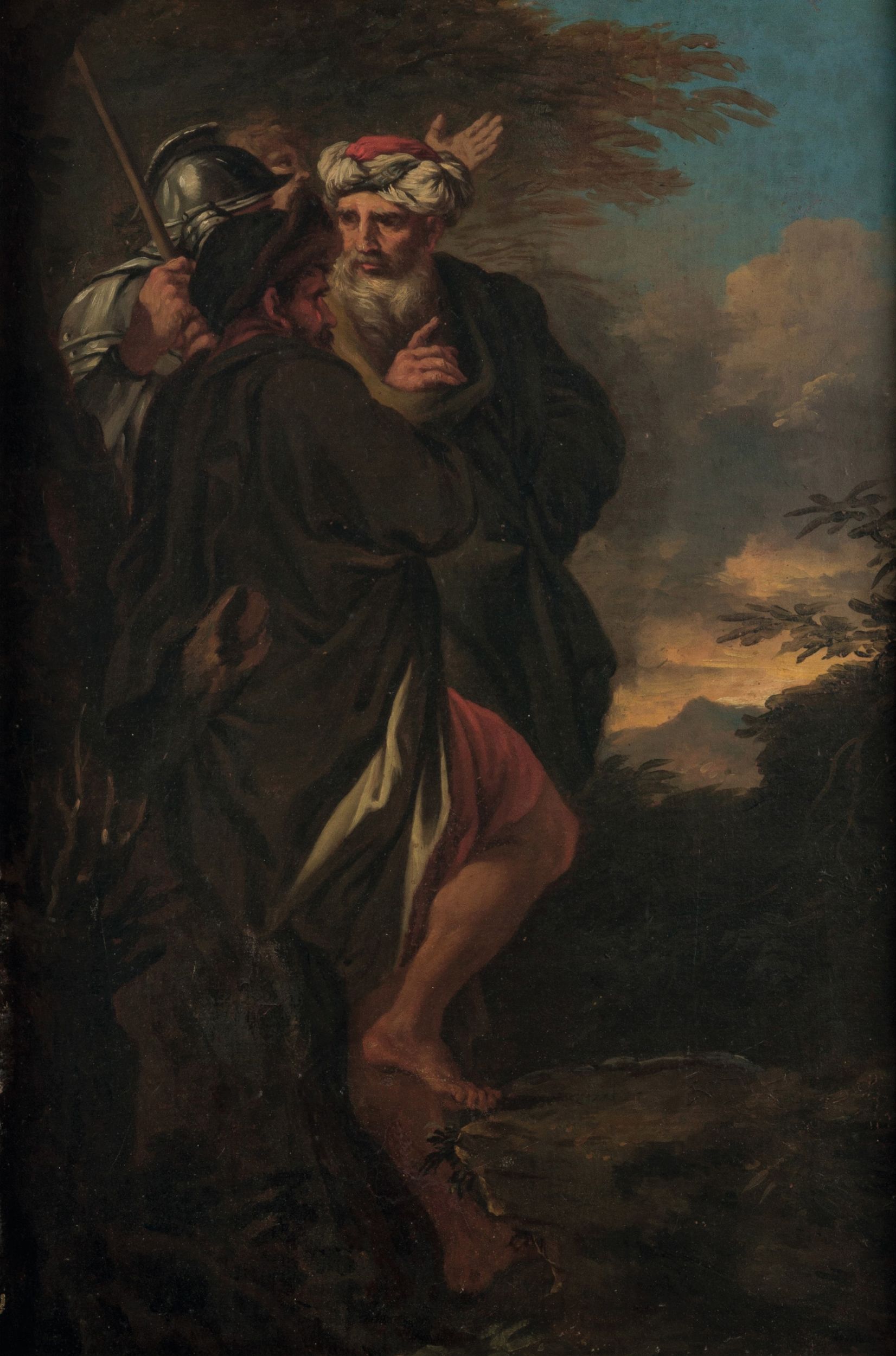 Scuola del XVIII secolo Tre figure entro paesaggio