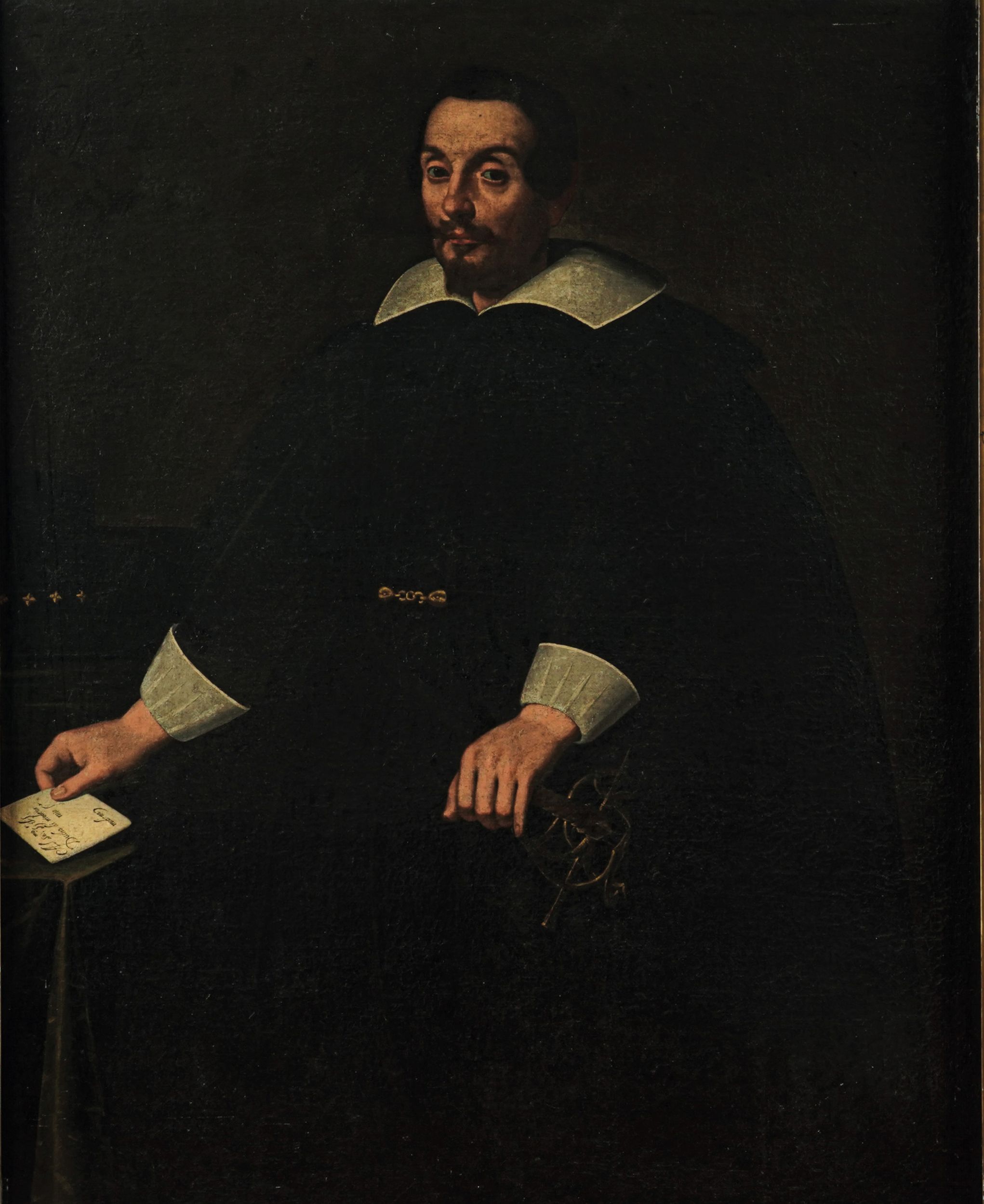 Scuola lombarda del XVII secolo Ritratto di gentiluomo con lettera