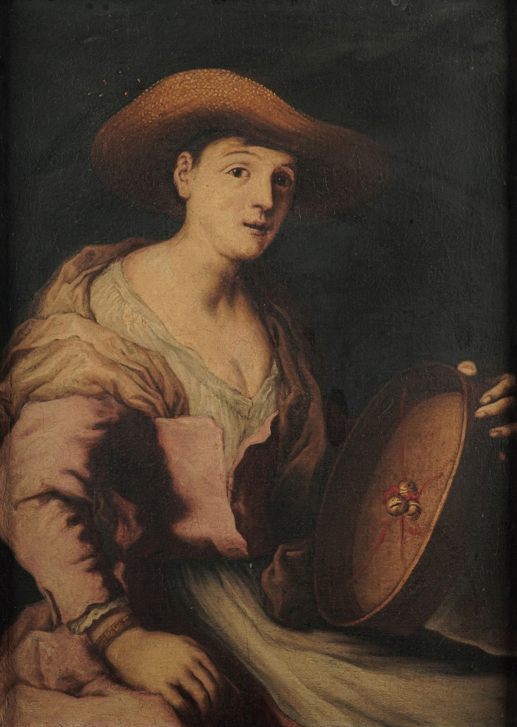 Scuola veneta del XVIII secolo Giovane contadina con tamburello