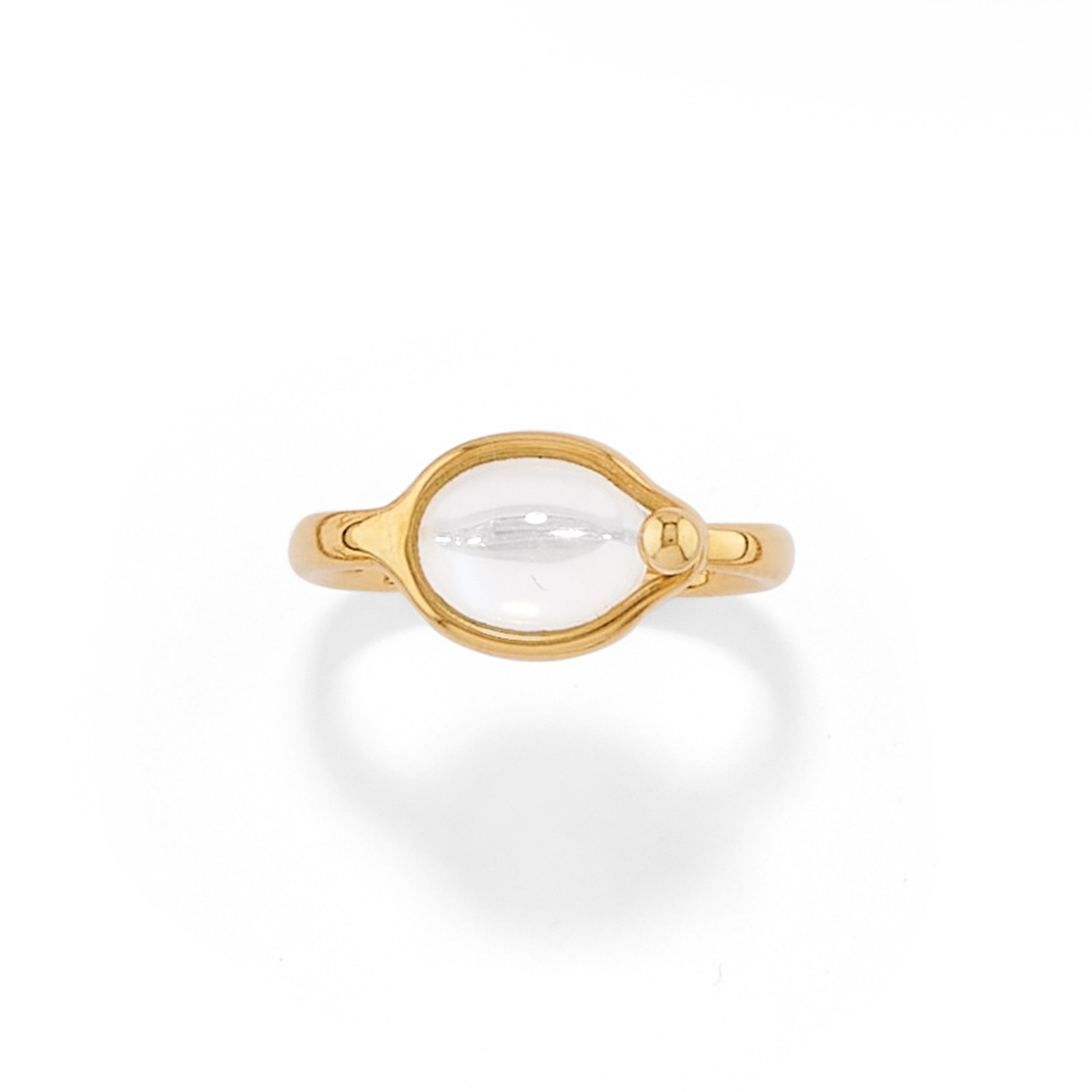 al centro pietra incolore taglio ovale cabochon.