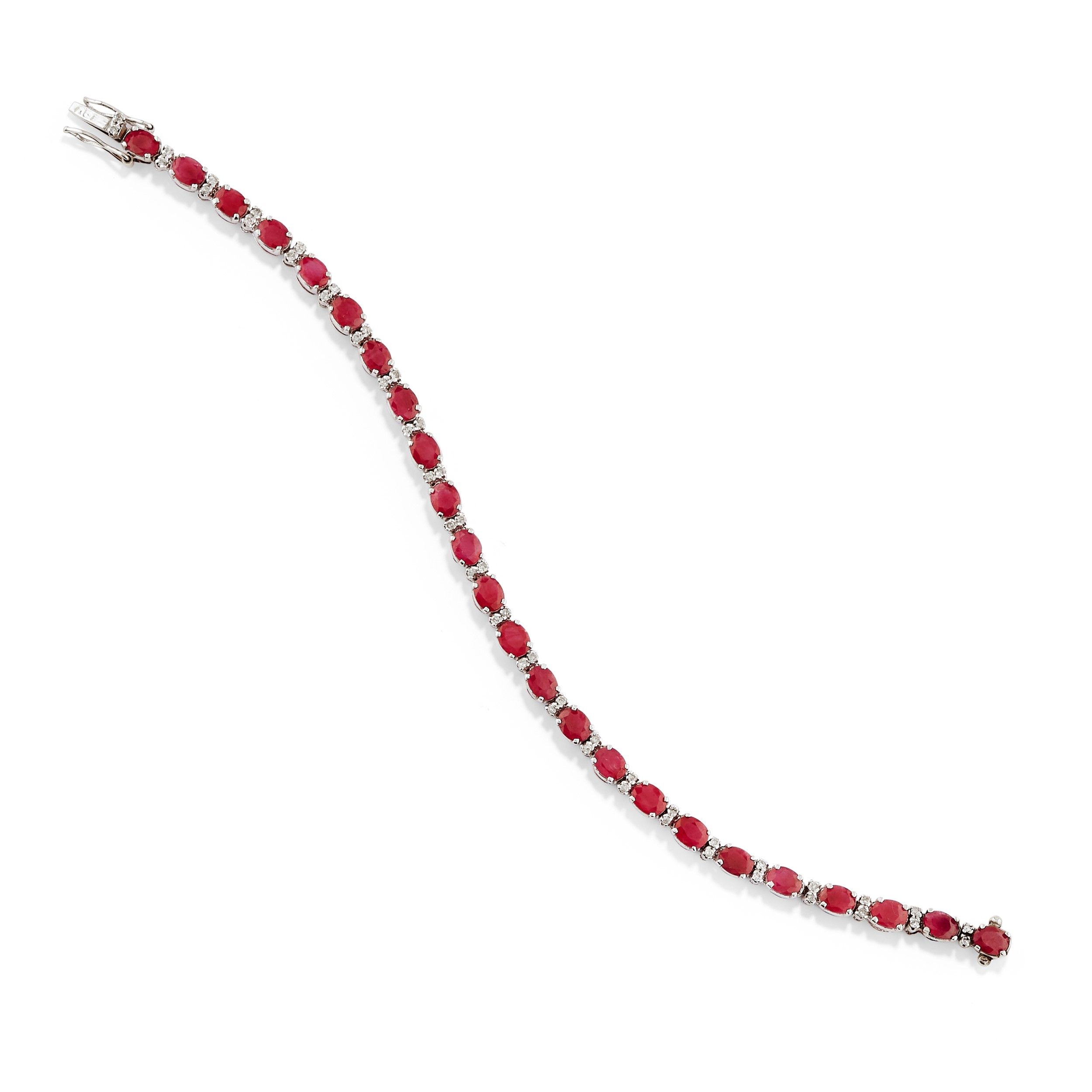 percorso da rubini taglio ovale per totale ct 8,00 circa alternati a piccoli diamanti taglio brillante per totale ct 0,40 circa.