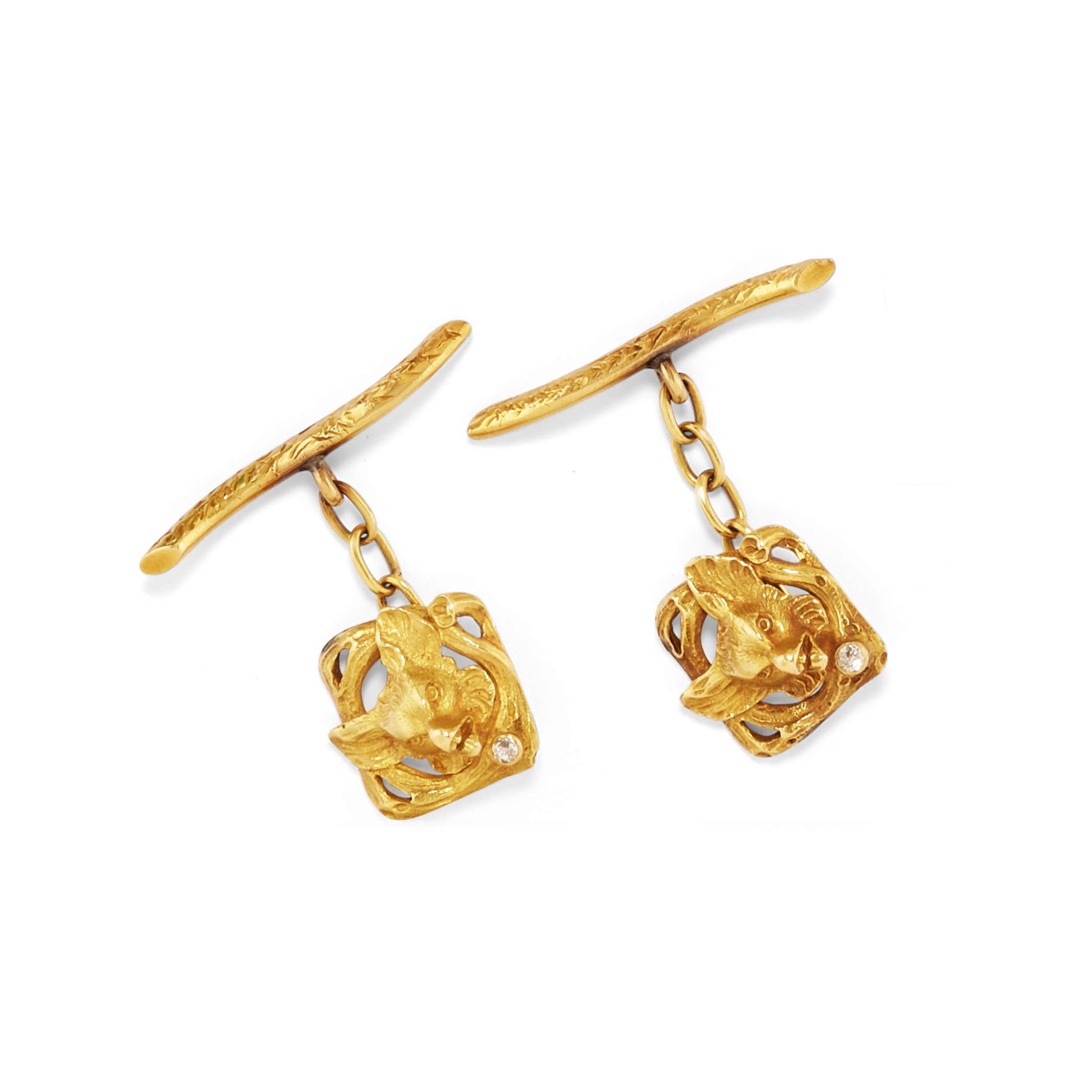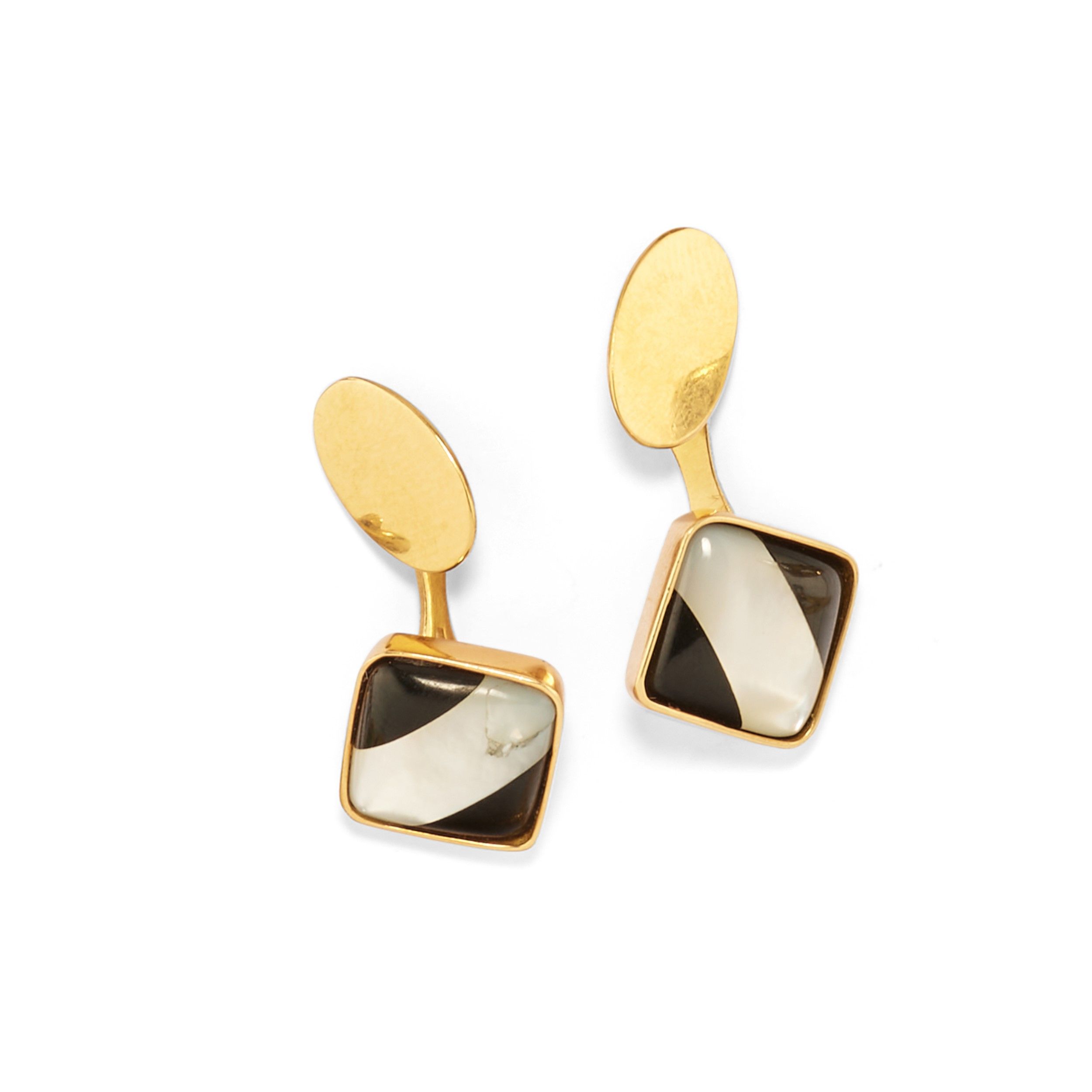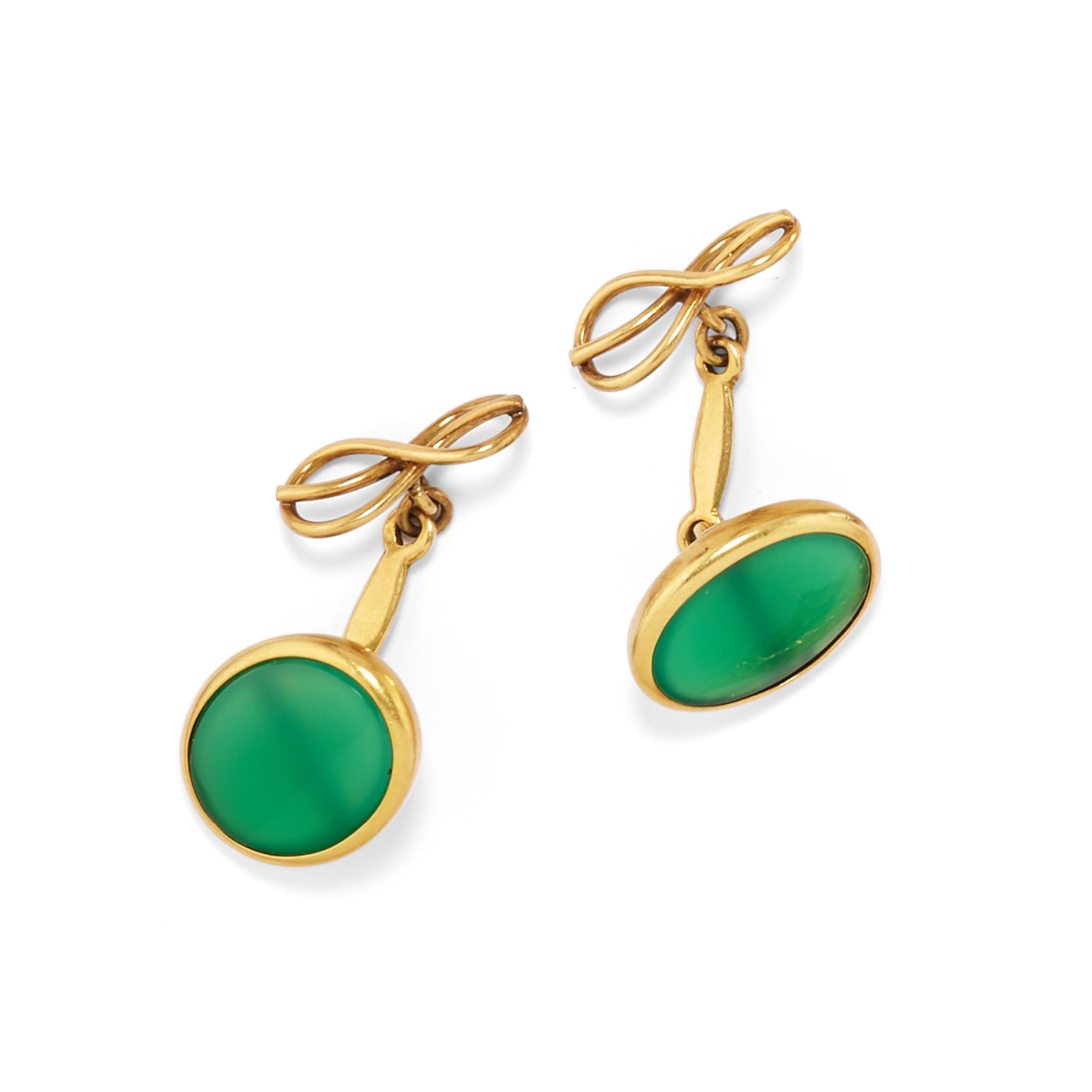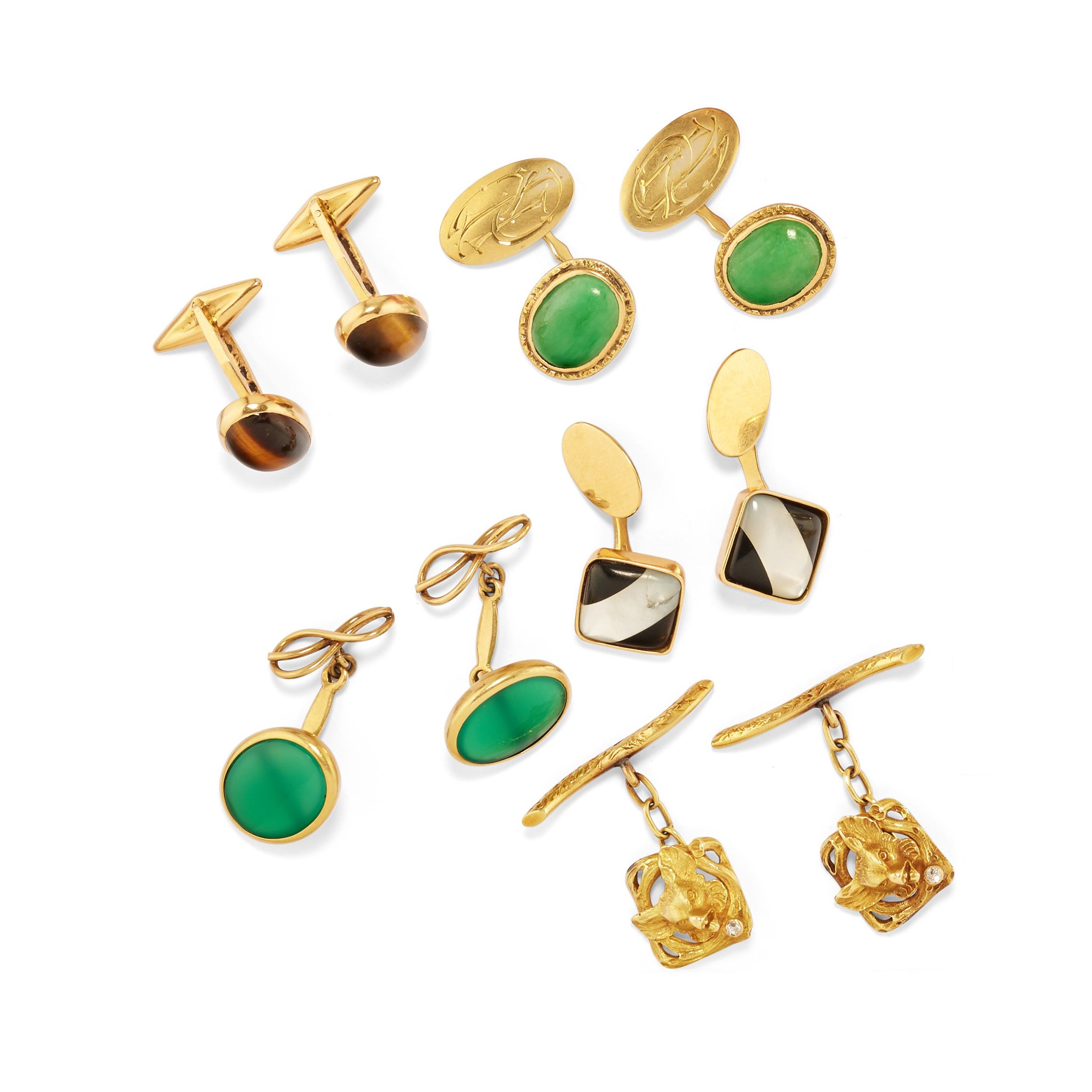 di varie forme, con pietre verdi (prob. crisoprasio e giada giadeite), occhio di tigre, onice, madreperla e diamanti taglio vecchio.