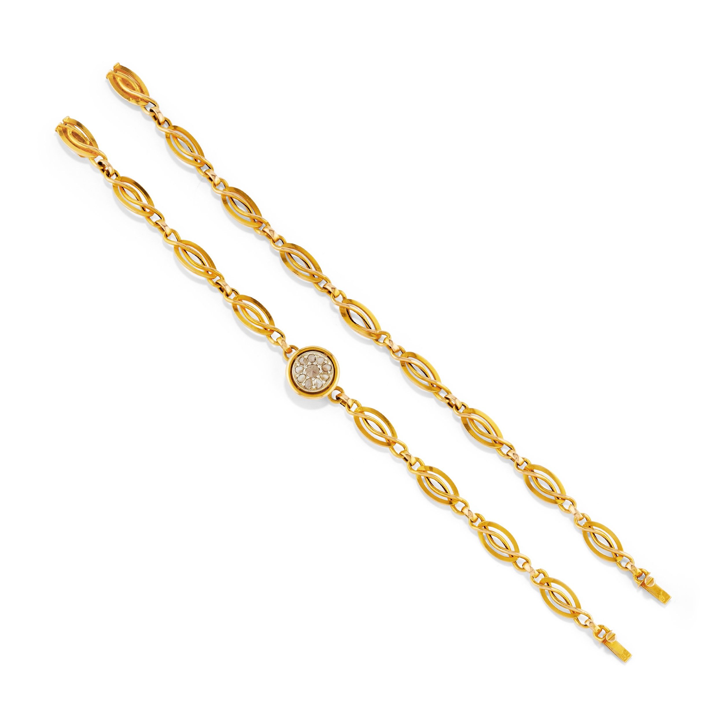 a maglie intrecciate, decoro in diamanti taglio rosa, indossabile anche come collana.