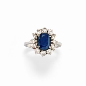 in oro bicolore 18k, Peso g 26,70 diametro interno cm 5,50 realizzato con motivo a punta, zaffiri taglio ovale [..]