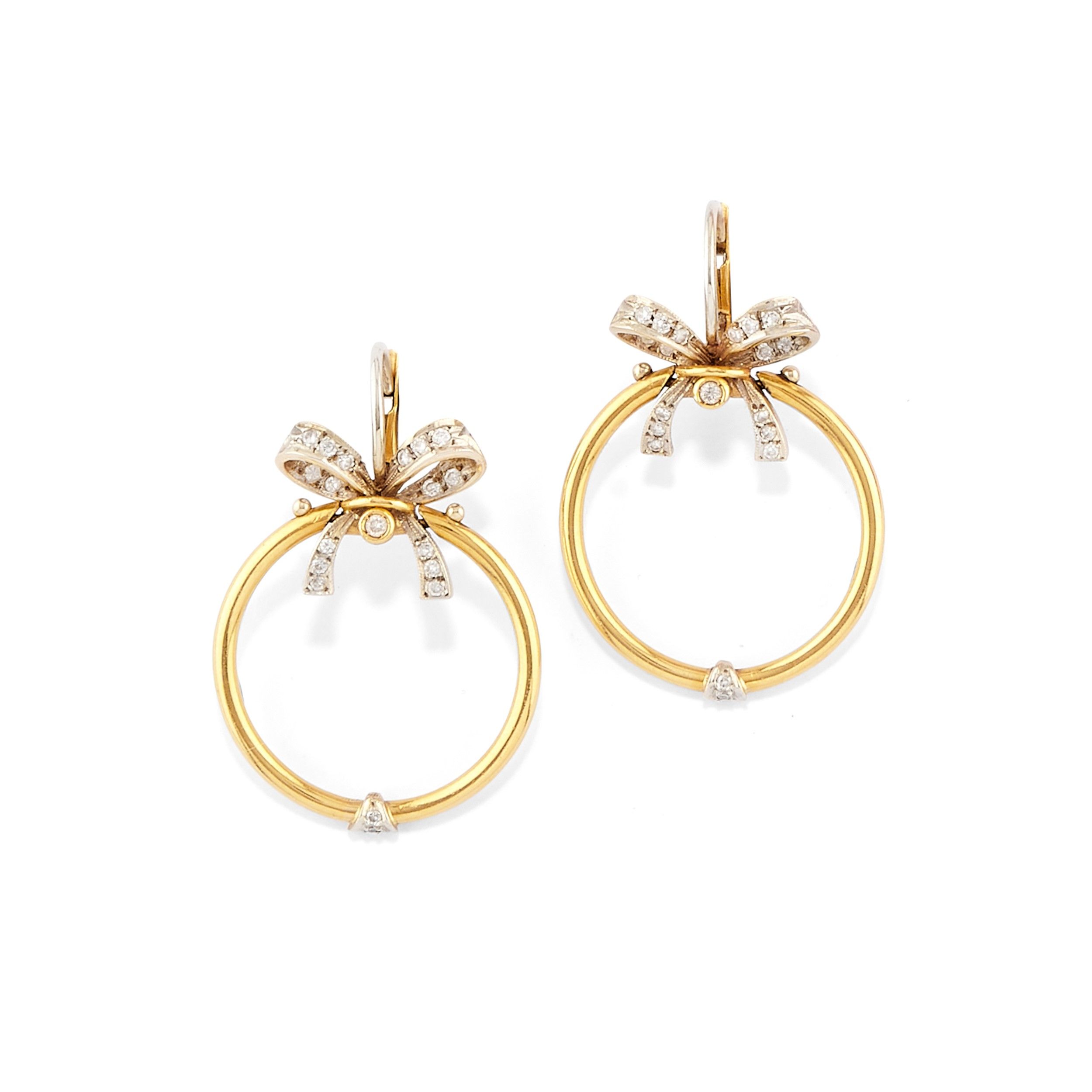 motivo a fiocco con piccoli diamanti taglio brillante su cerchio, chiusura a monachella e clip.