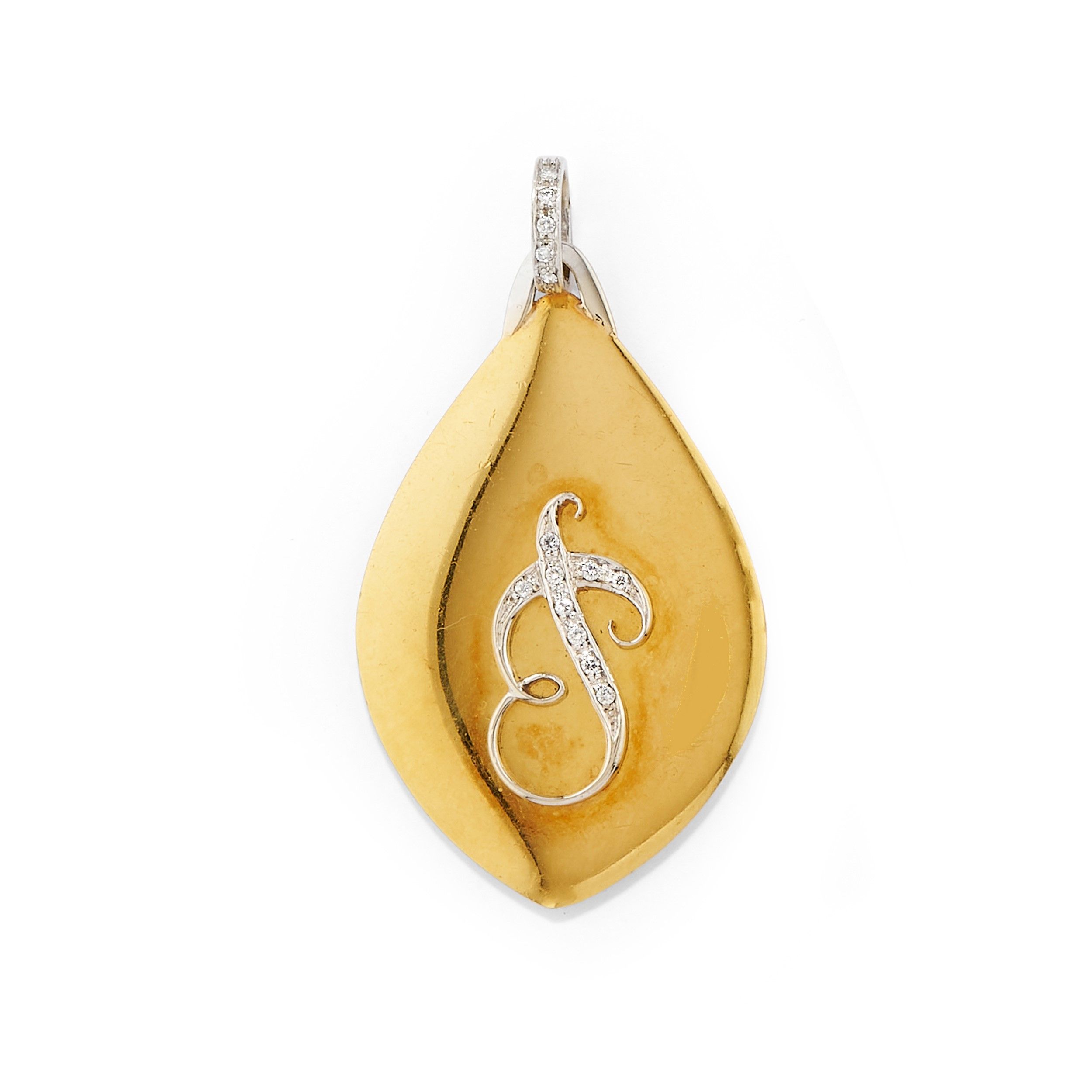 a forma di goccia con diamanti taglio brillante per totale ct 0,20 circa, con iniziali.