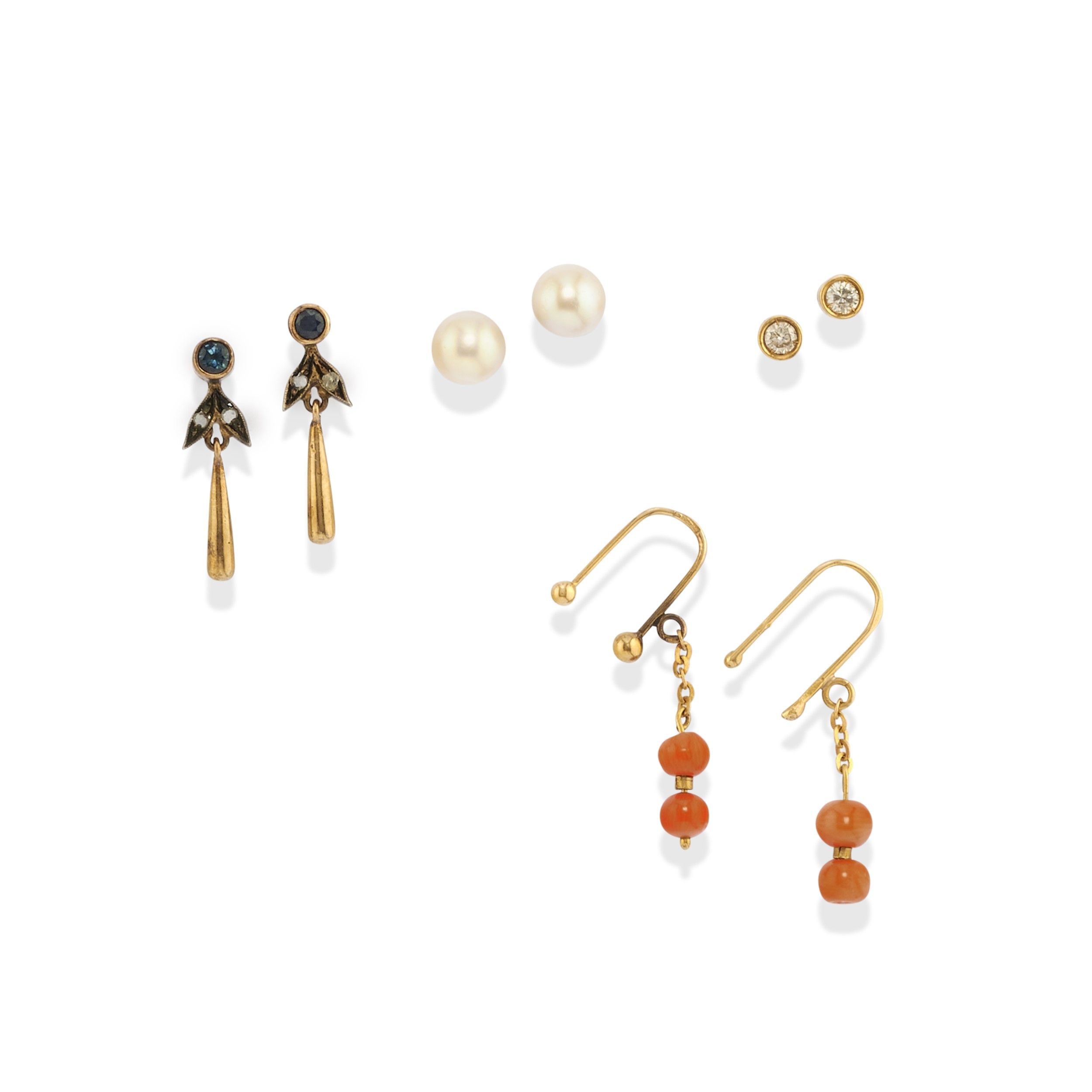 diamanti, corallo, zaffiri, perle coltivate, chiusure perno e farfalla e monachella.