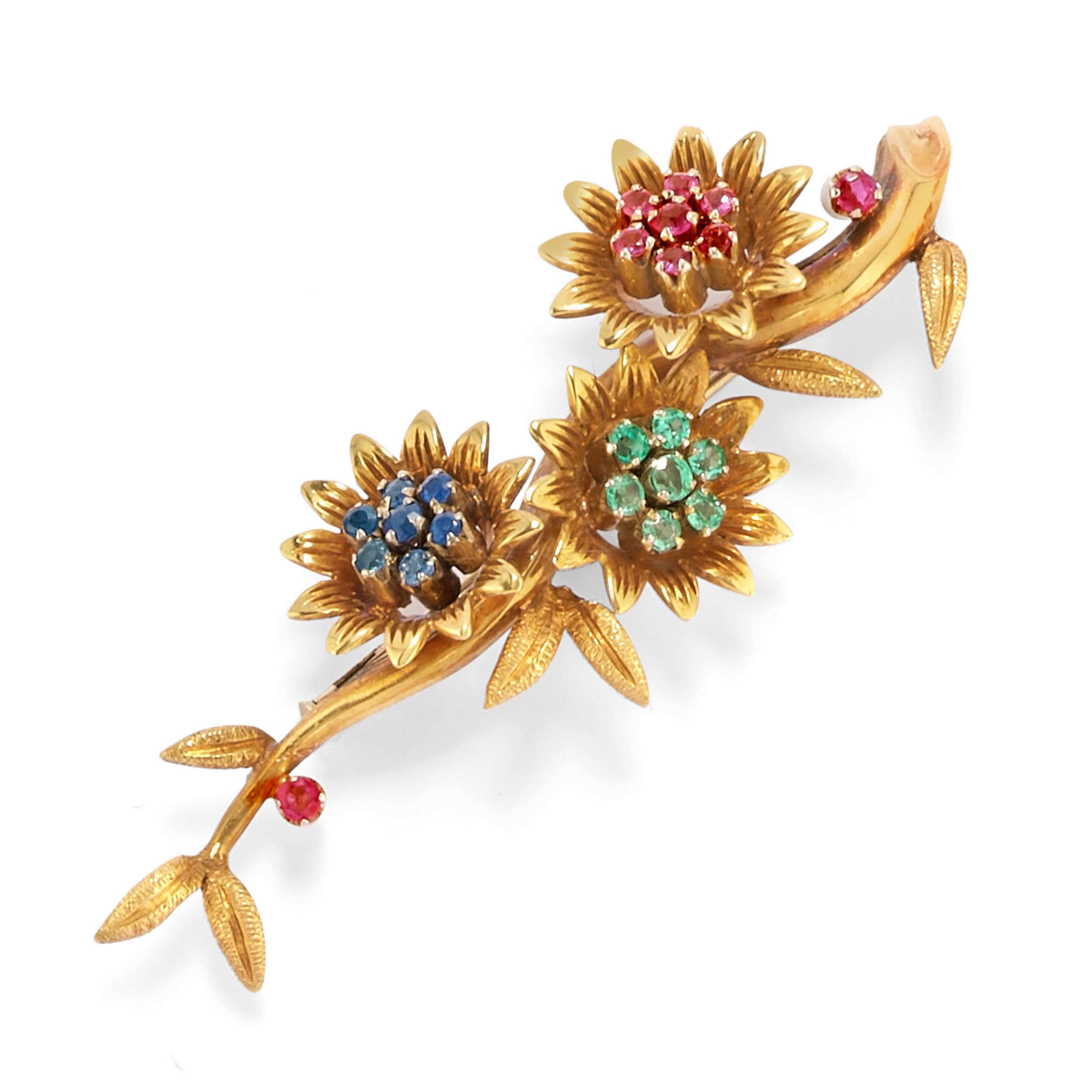 di gusto floreale, con rubini, smeraldi e zaffiri taglio rotondo.