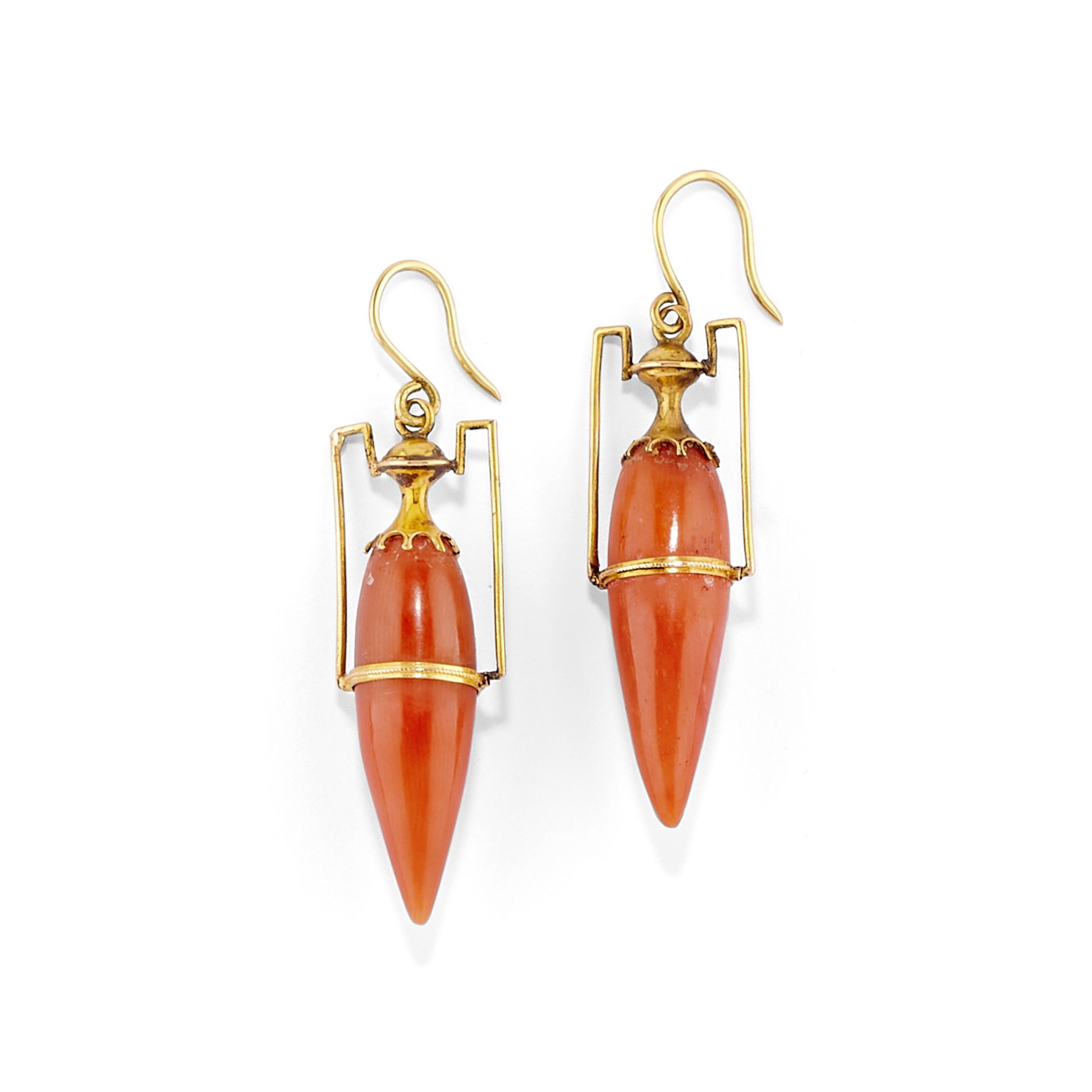 due coppie con corallo e una coppie con perla d'acqua dolce, chiusura a monachella e monachella con clip.
