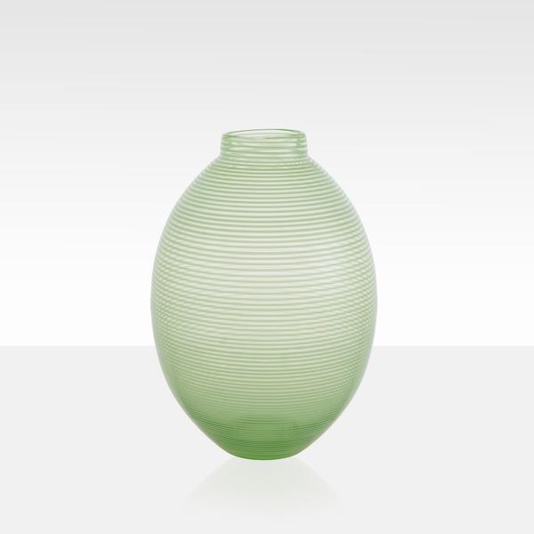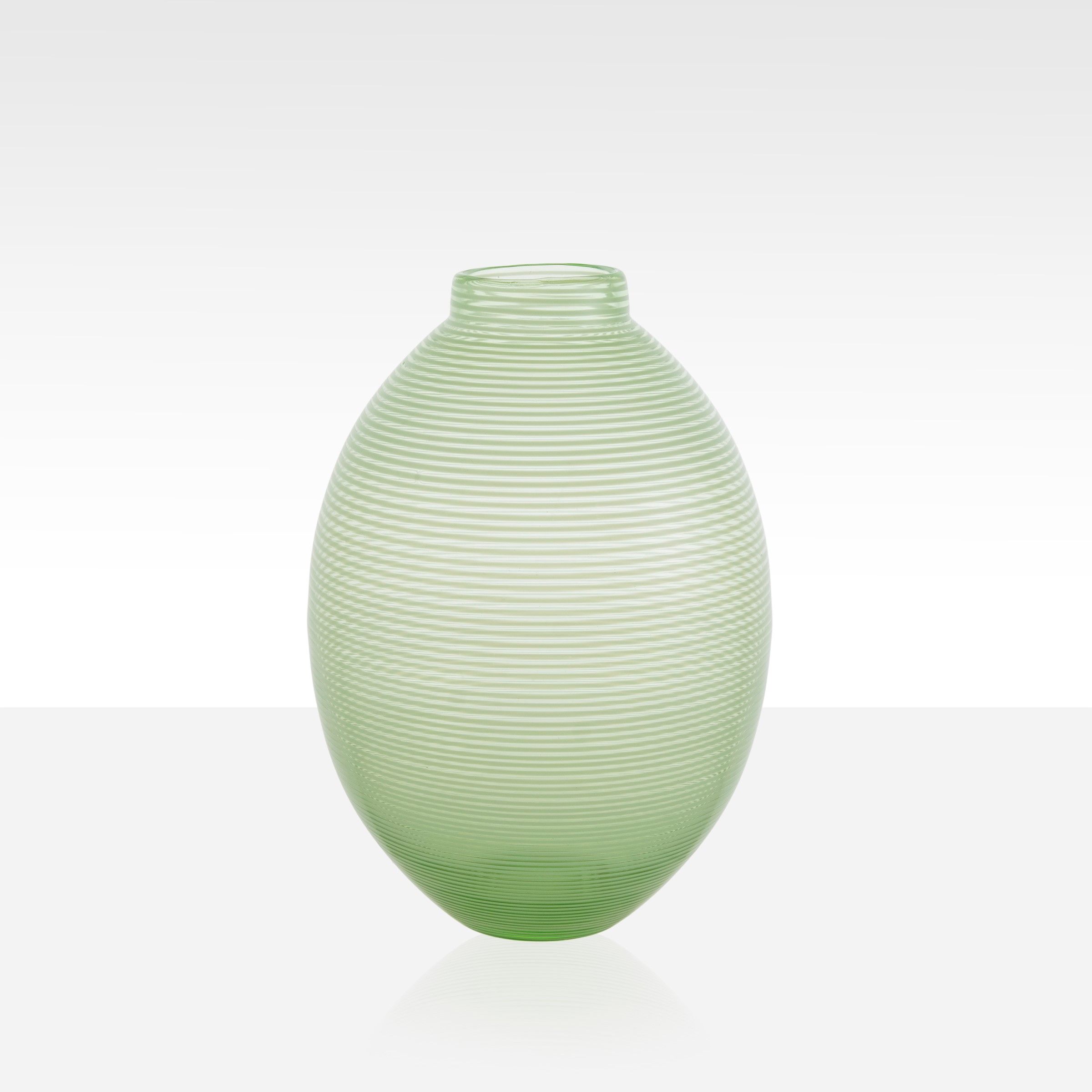 Murano, anni 50 vaso in vetro trasparente e colorato a mezza filigrana