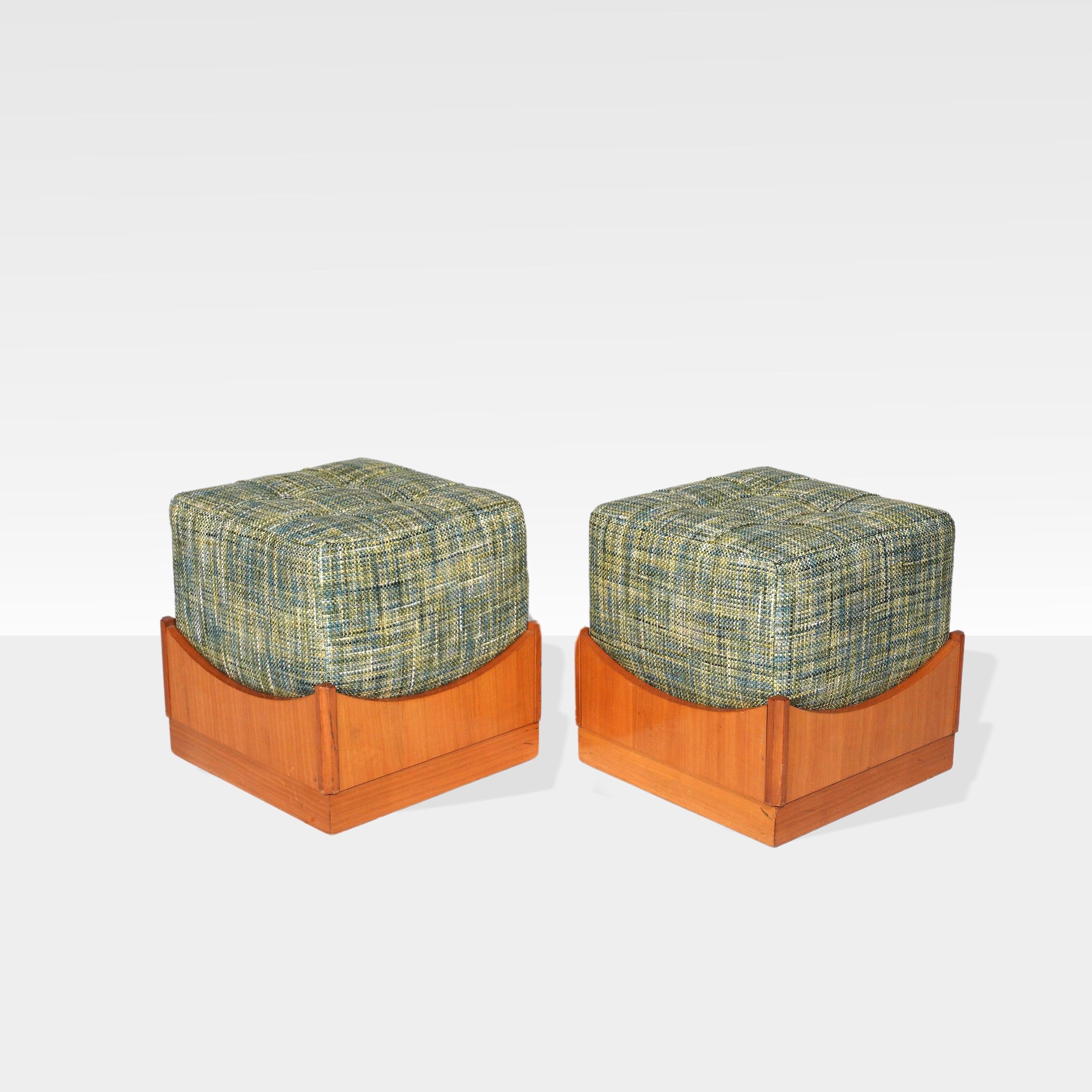 anni 60 coppia di sgabelli in legno e tessuto imbottito