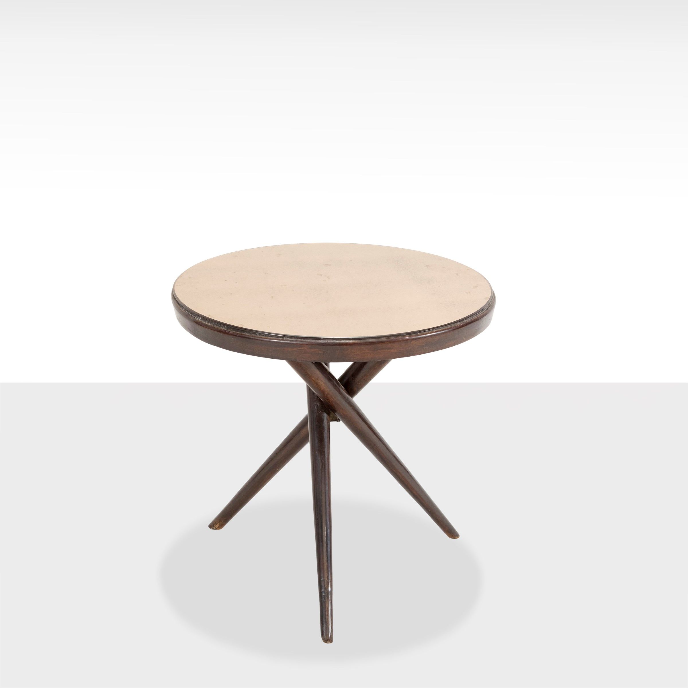 anni 50 tavolino basso in legno e vetro specchiato, lievi usure
