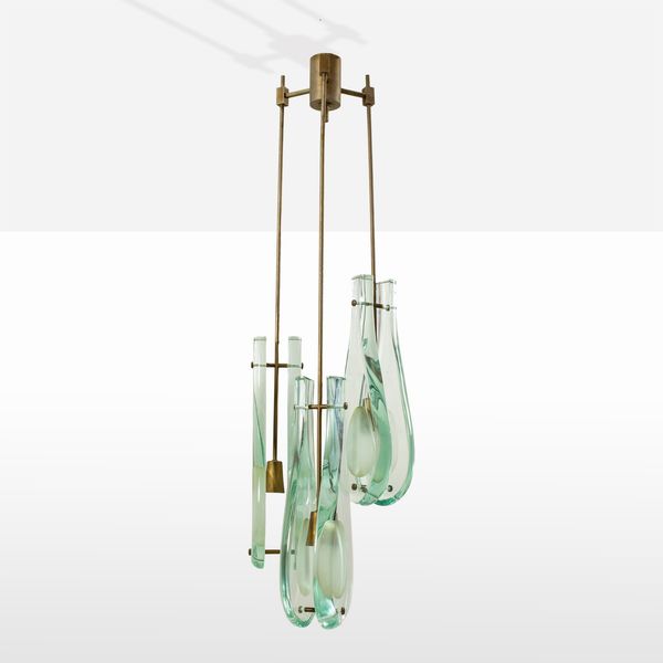 Italia, anni 60 lampada a sospensione mod. 2259/3, in ottone nichelato e diffusori in cristallo trasparente molato e satinato. Bibliografia: R. Aloi, L’arredamento moderno, pag. 69, Hoepli, 1964; F. Deboni, Fontana Arte, f. 419, Allemandi 2012