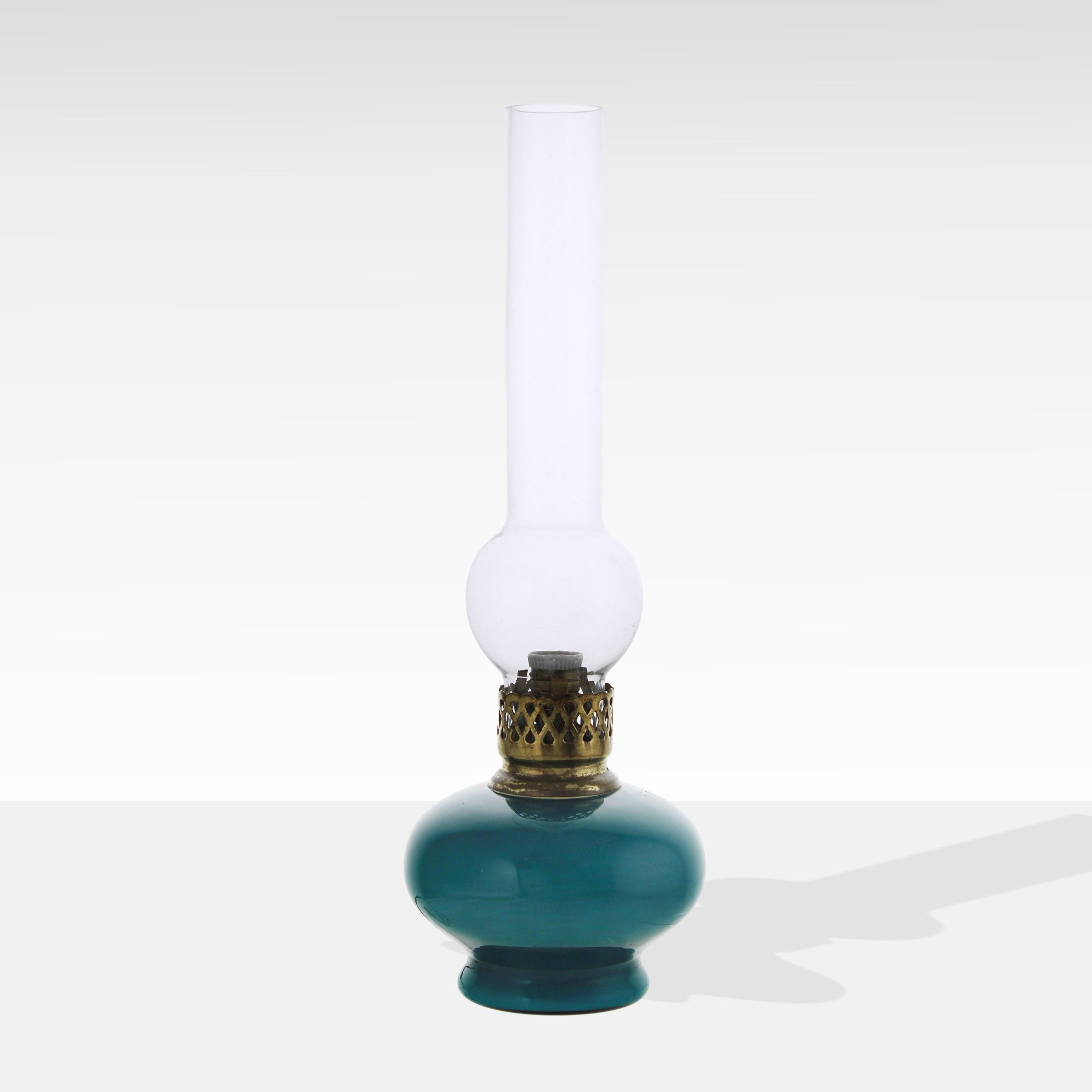 Murano, anni 50 lampada da tavolo in ottone, vetro trasparente e vetro opalino, etichetta della produzione, lievi usure.