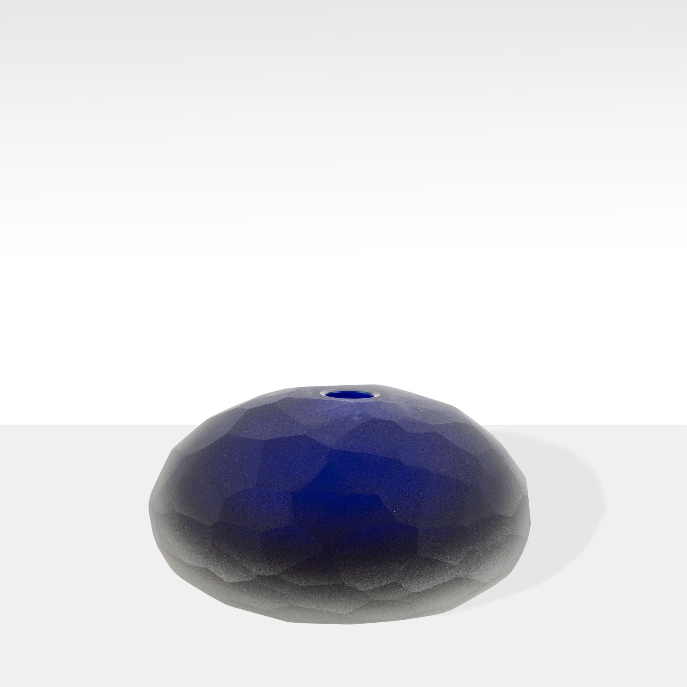 Murano, 1997 vaso in vetro soffiato, molato e sommerso color zaffiro, firma incisa ed etichetta della produzione. Bibliografia: Catalogo commerciale Venini, 1997