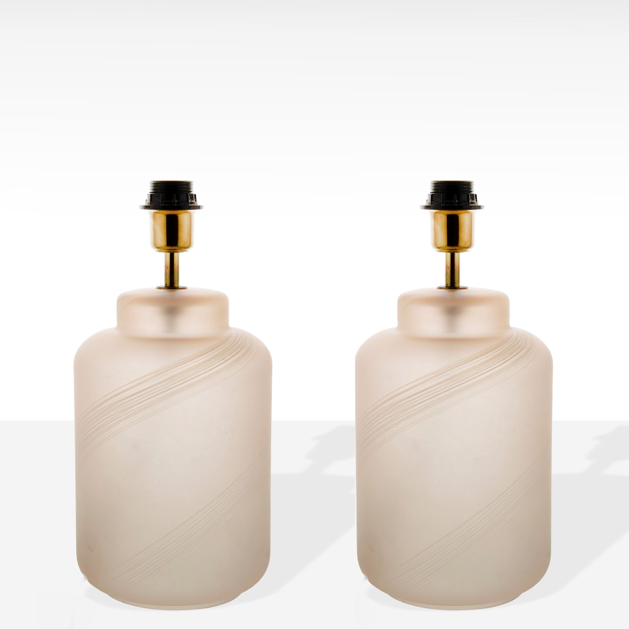 Italia, anni 70 coppia di lampade in vetro satinato colorato, complete di paralume, etichetta della produzione