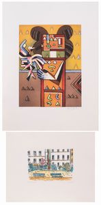 lotto di 2 acqueforti acquetinte es. 12/85 e 14/85 Kodra: acquaforte acquatinta es. 32/130 cm. 51x39 (lastra) [..]