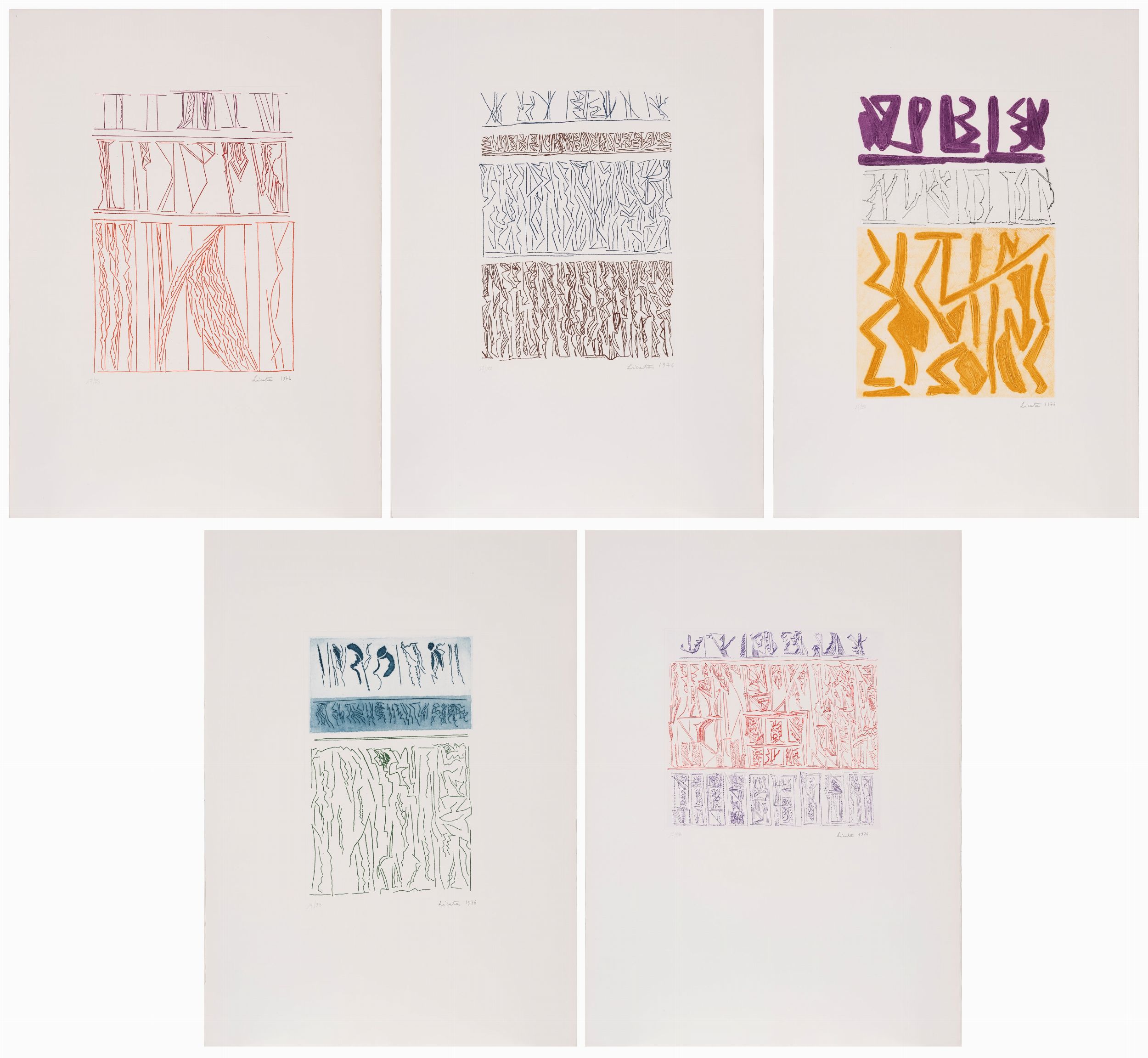 lotto di 5 acqueforti acquetinte es. 17/99, cm. 40x30 (lastre) - 70x50 (fogli) cad.