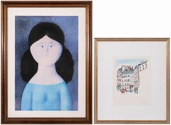 A. Bueno, Figura cm. 70x50 litografia es. XX/C firma e tiratura in basso
