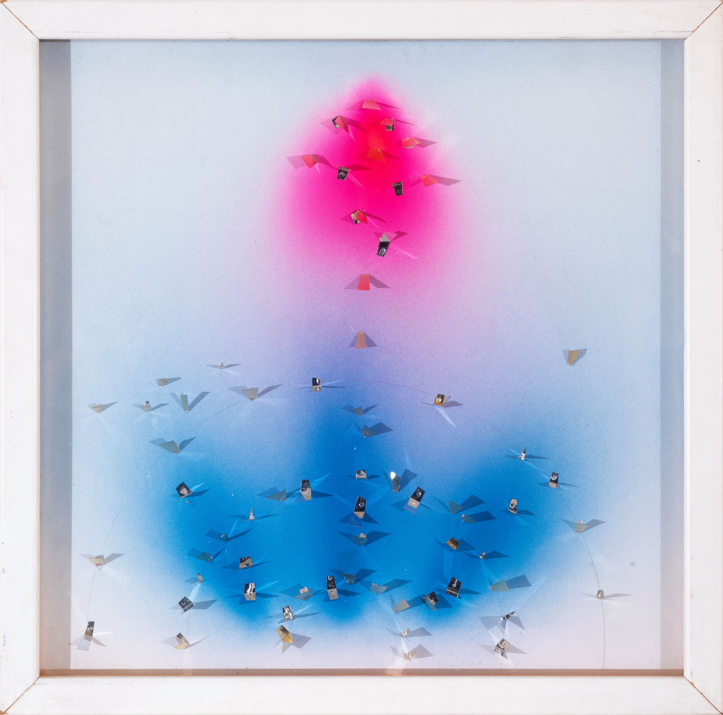 tecnica mista e lamelle specchianti su tavola, cm. 50x50