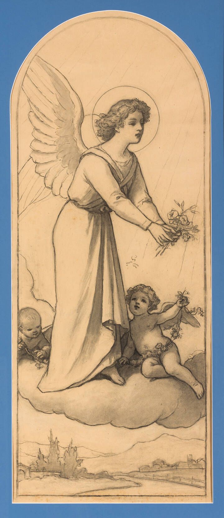 108x44 disegno a matita e carboncino Pieghe della carta in alto al centro.