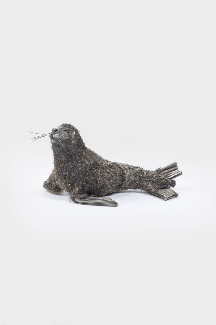 Peso gr 324 8 925/1000 raffigurante una foca. Reca punzone della ditta Clementi acquisita poi da Buccellati