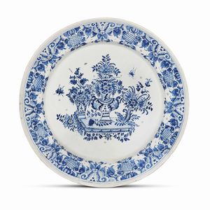 PIATTO DA PARATA, DOCCIA, MANIFATTURA GINORI, 1740-1745 CIRCA in maiolica dipinta in monocromia blu con un decoro [..]