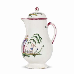 CAFFETTIERA, DOCCIA, MANIFATTURA GINORI, 1780 CIRCA in porcellana dipinta in policromia, corpo piriforme, versatoio [..]