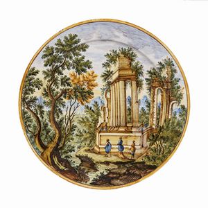GRANDE PIATTO, CASTELLI DI ABRUZZO, SECOLO XVIII in maiolica di forma circolare su base piana priva di cercine. [..]