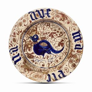 CRESPINA, MONTELUPO, 1560-1580 CIRCA in maiolica dipinta in policromia, coppa con umbone centrale poco rilevato, [..]